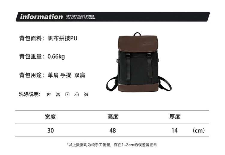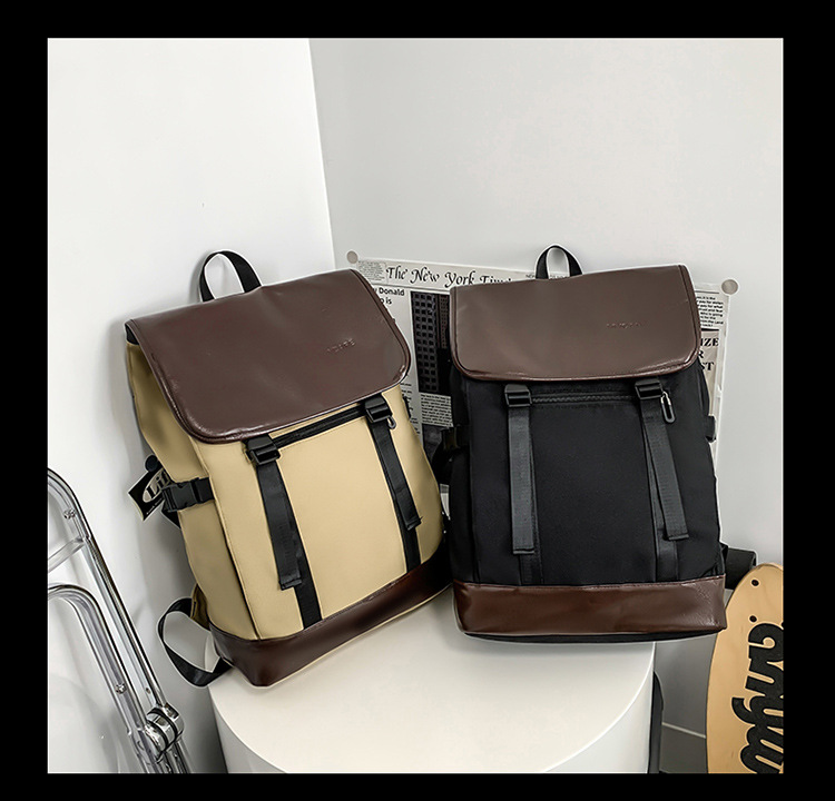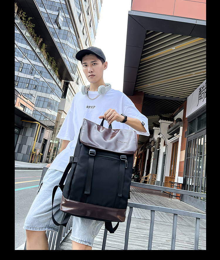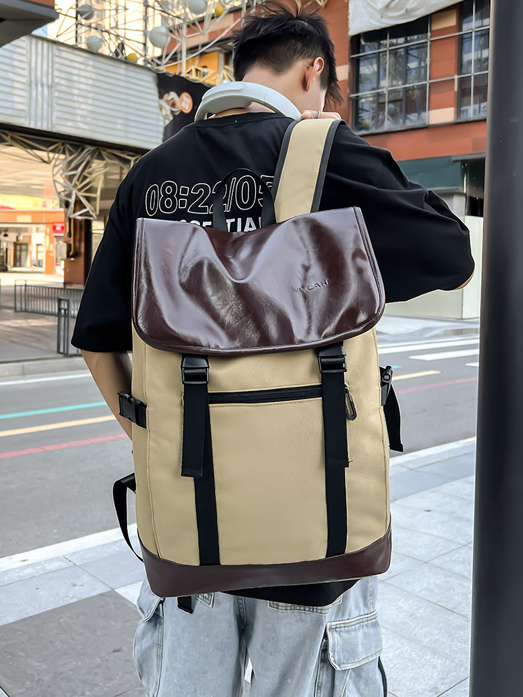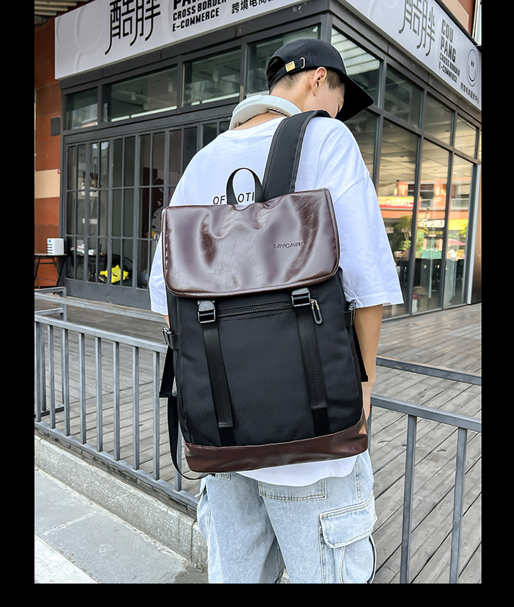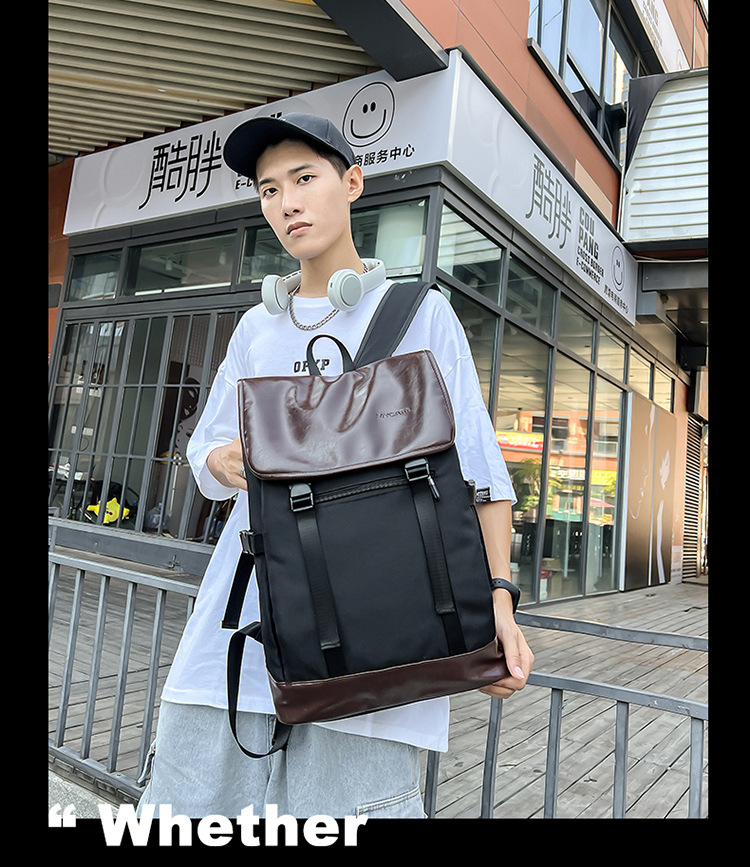 街头潮流时尚个性新款男士双肩包旅游休闲翻盖背包学生书包