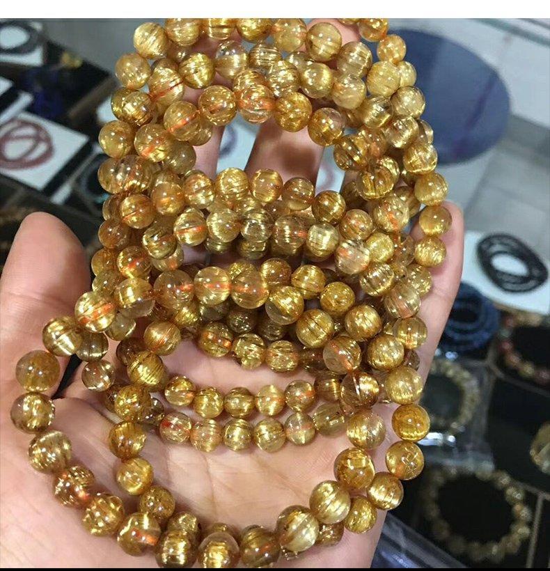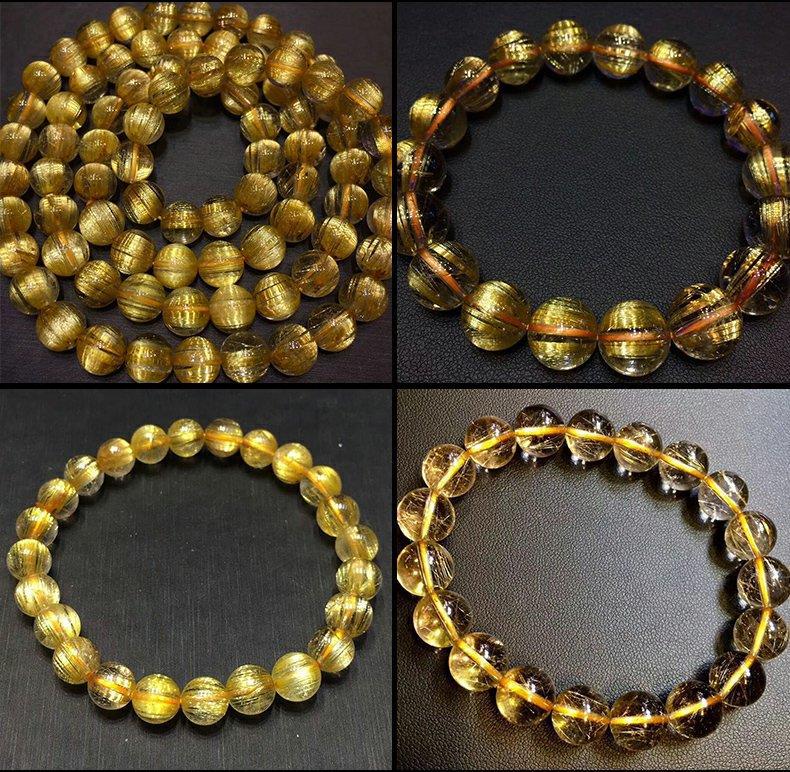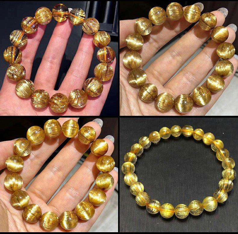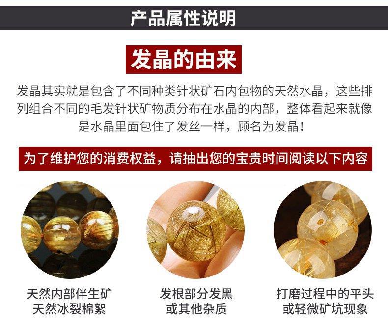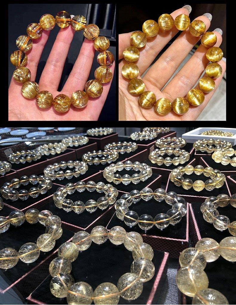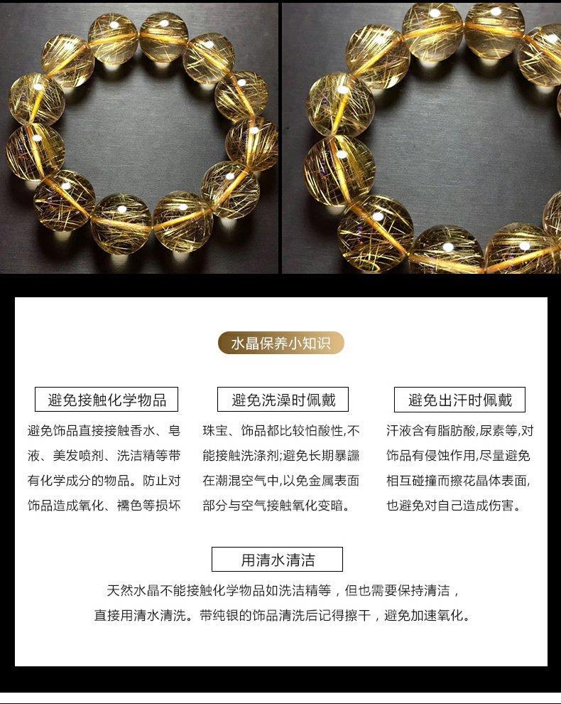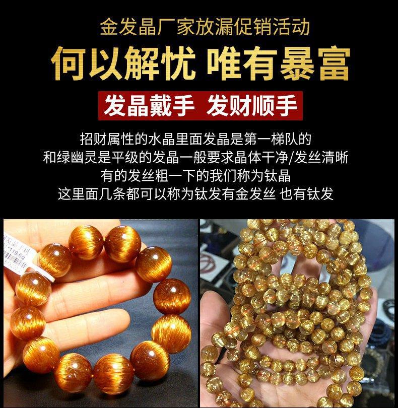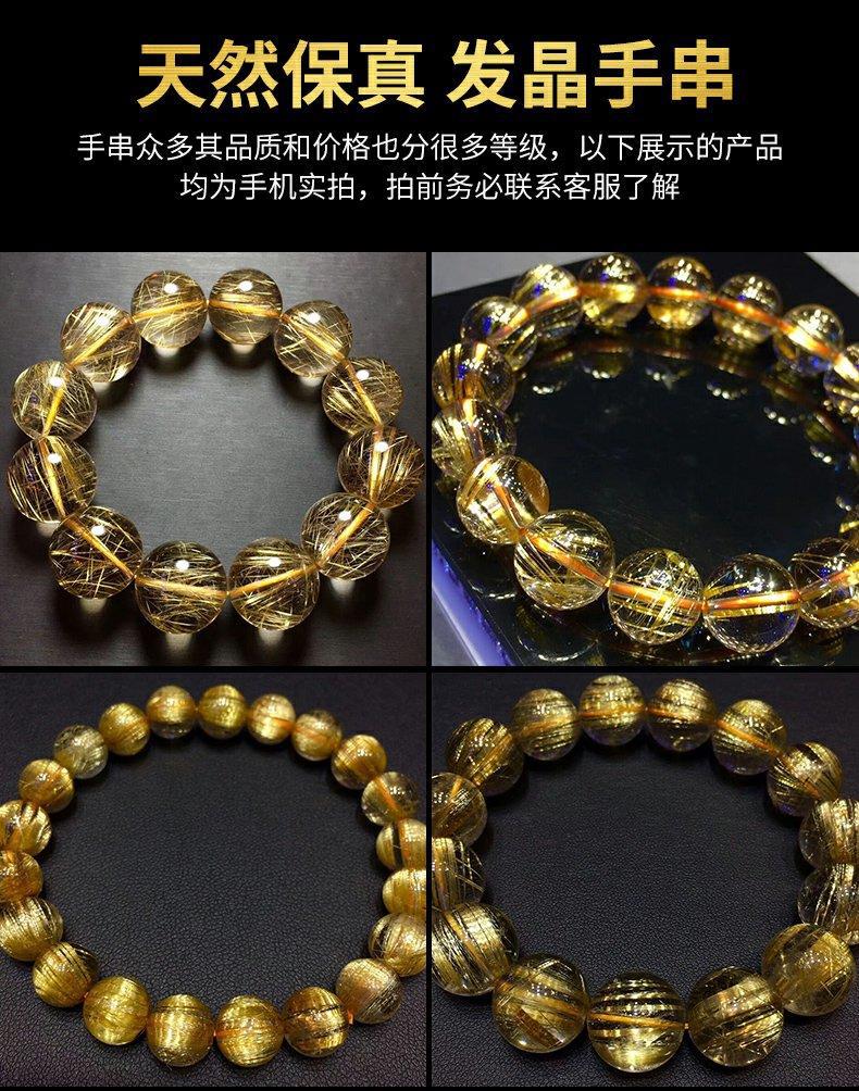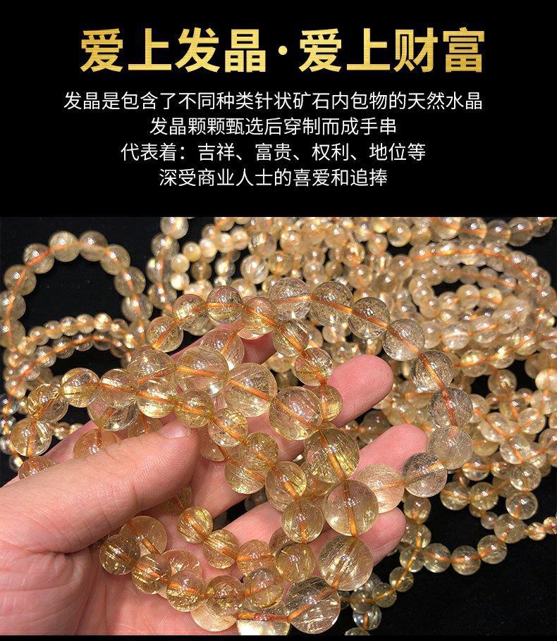 巴西金发晶天然水晶手串女板钛晶黄发晶消磁透明耐磨情侣手链男士
