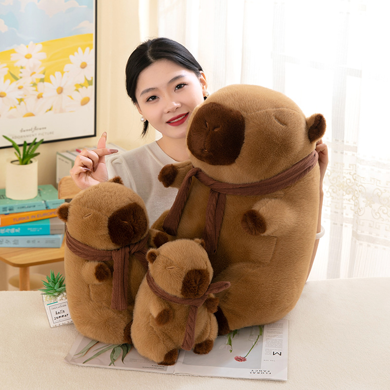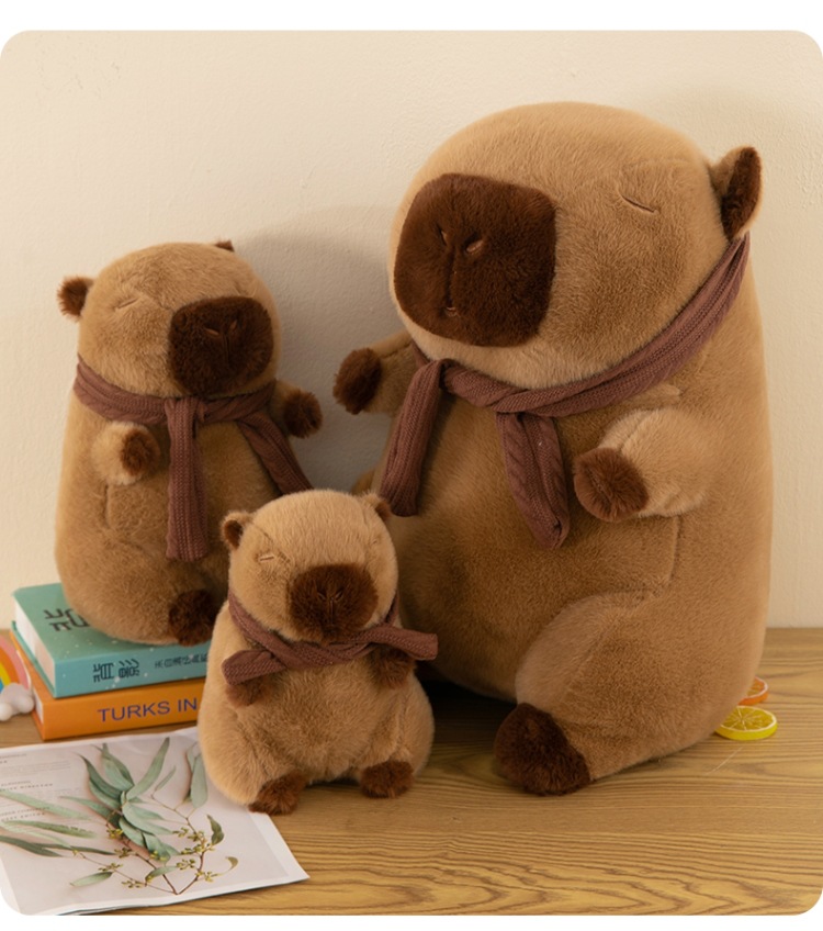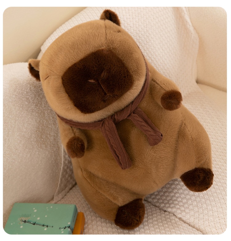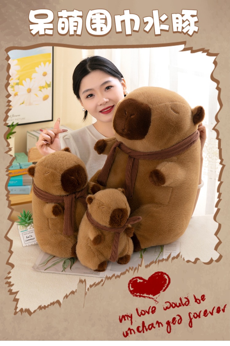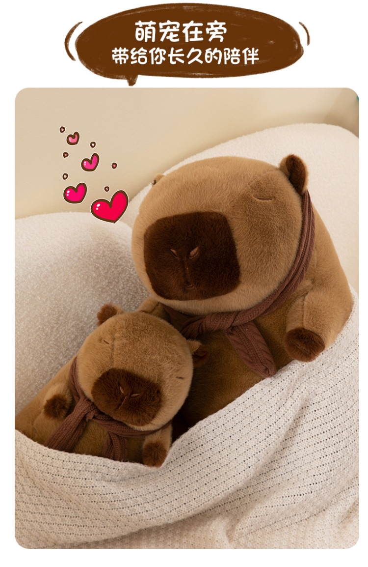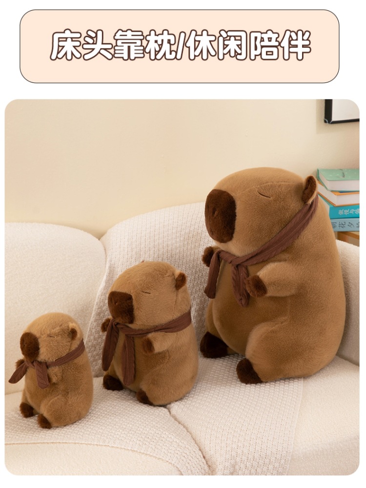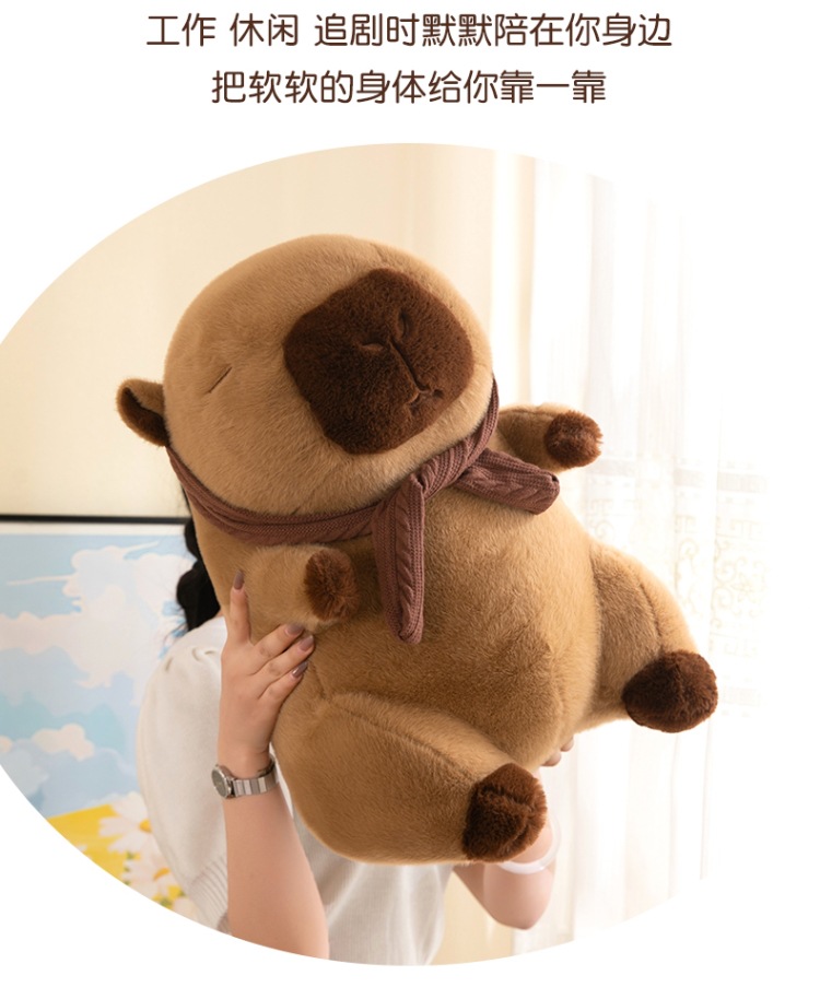新款变身卡皮巴拉公仔围巾水豚毛绒玩具抱枕兑换网红水豚玩偶跨境