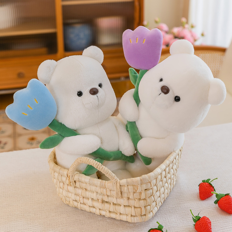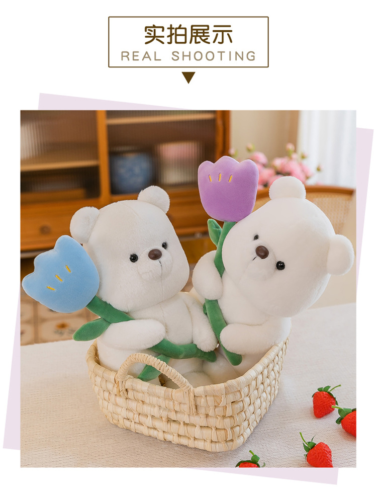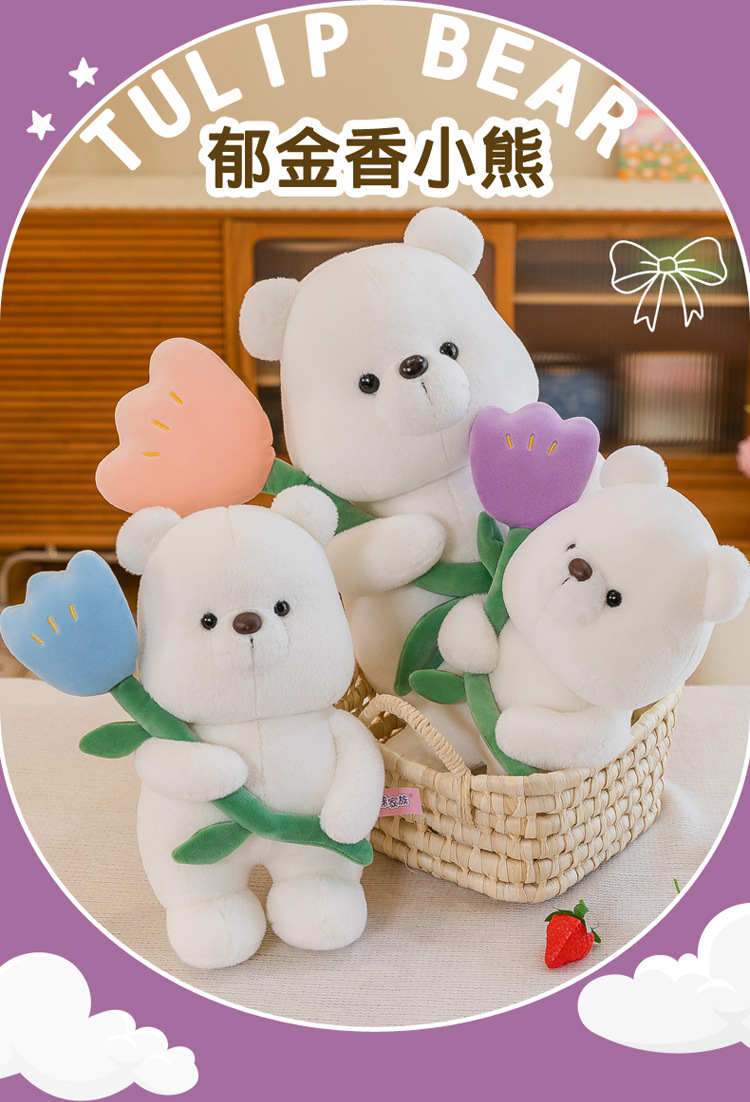 郁金香小熊公仔毛绒玩具女孩床上陪睡玩偶萌系居家摆饰厂家批发