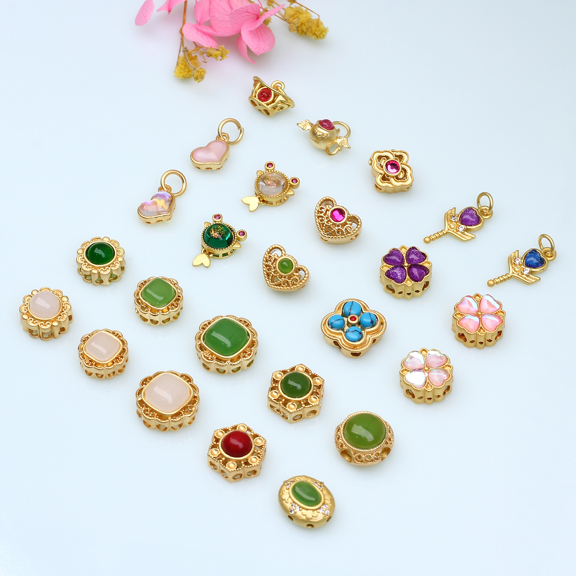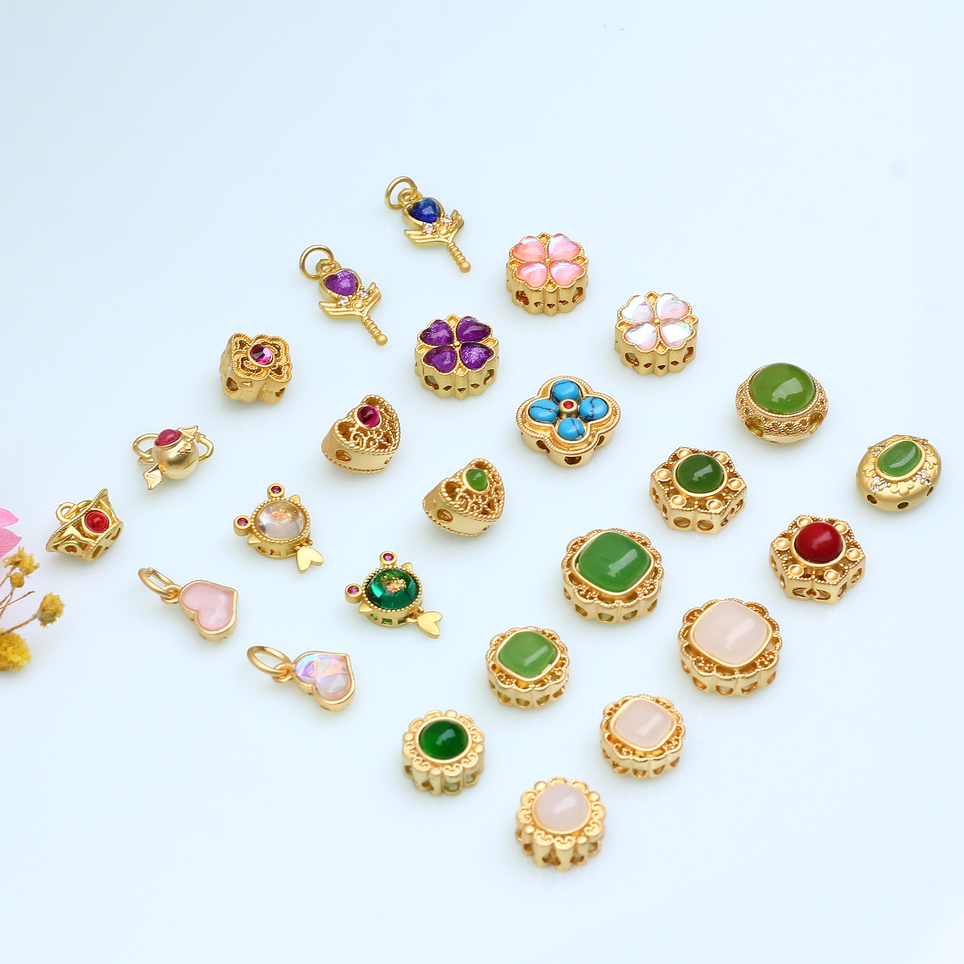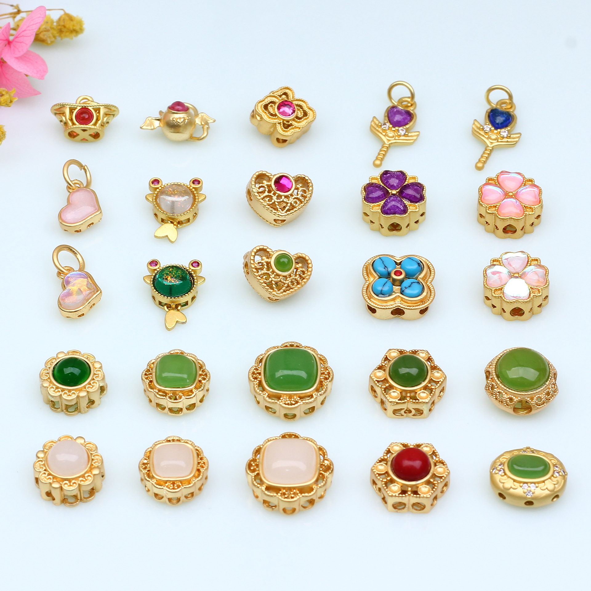 古法金镶绿松石沙金散珠 diy手链配饰手串配珠 饰品配件隔珠批发