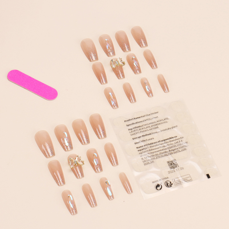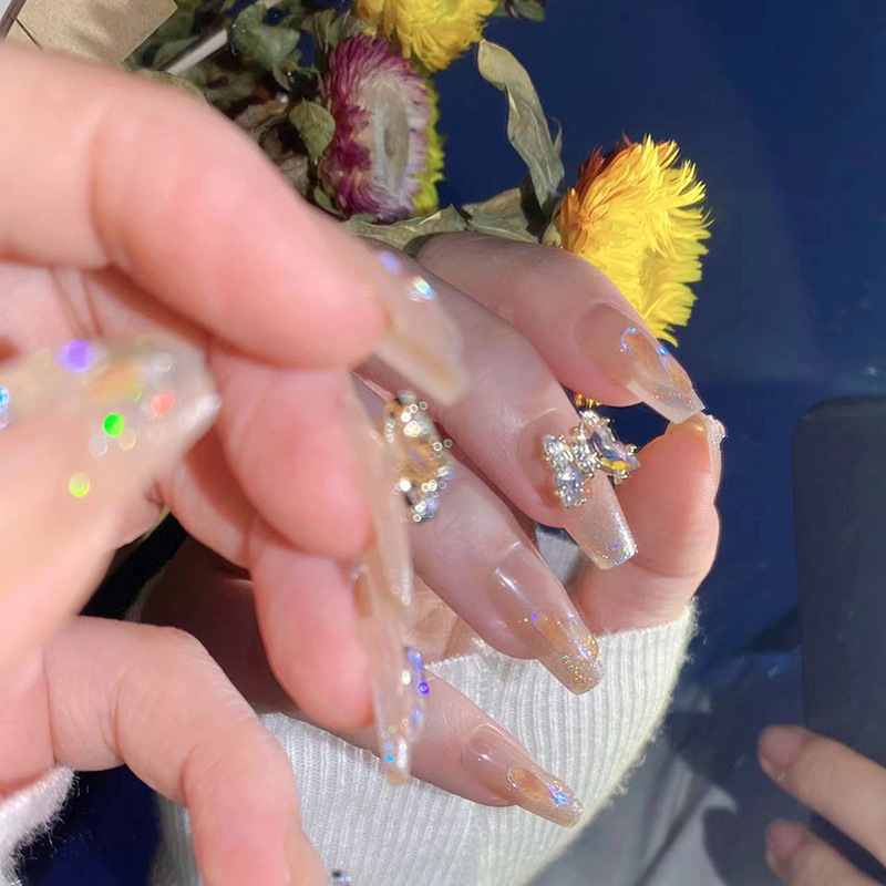 兔哥同款美甲穿戴甲批发中长款温精灵极光碎钻合金蝴蝶成品指甲贴