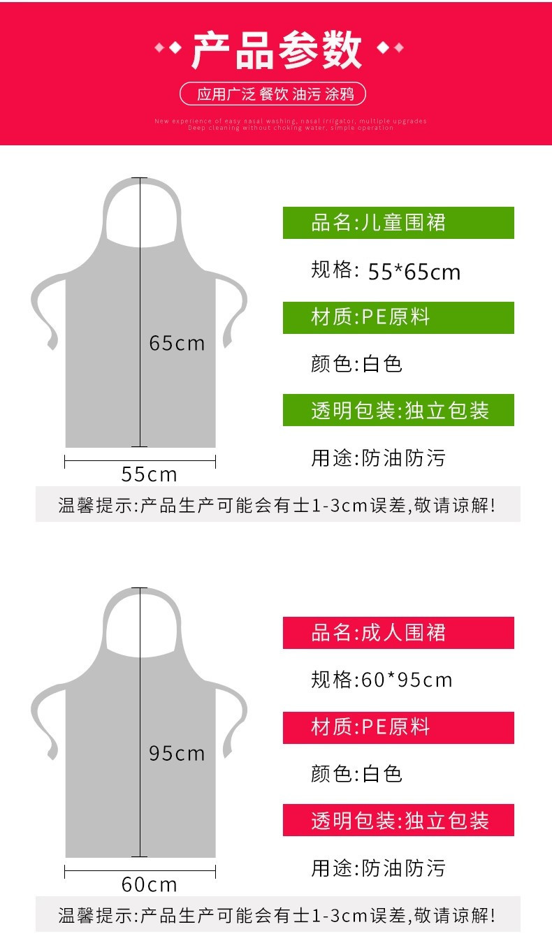 餐饮用塑料一次性围裙独立装烧烤火锅店大人儿童画画围兜厨房围裙