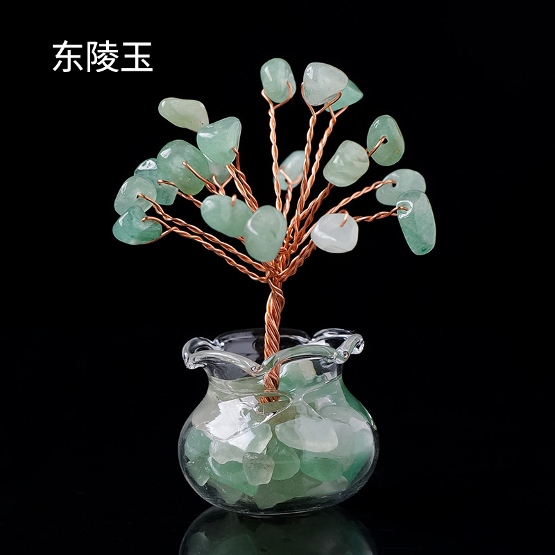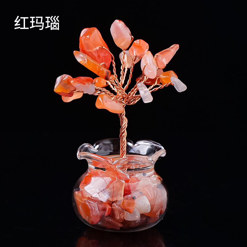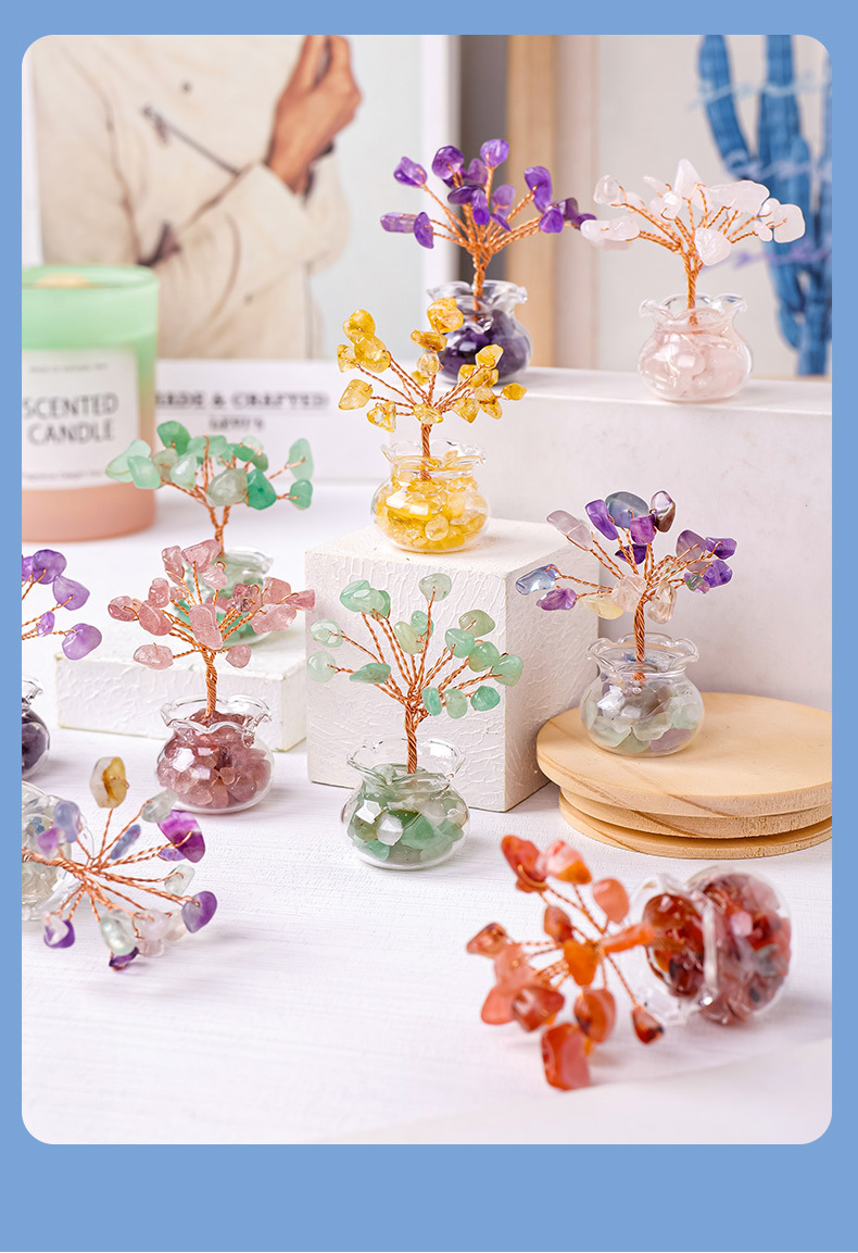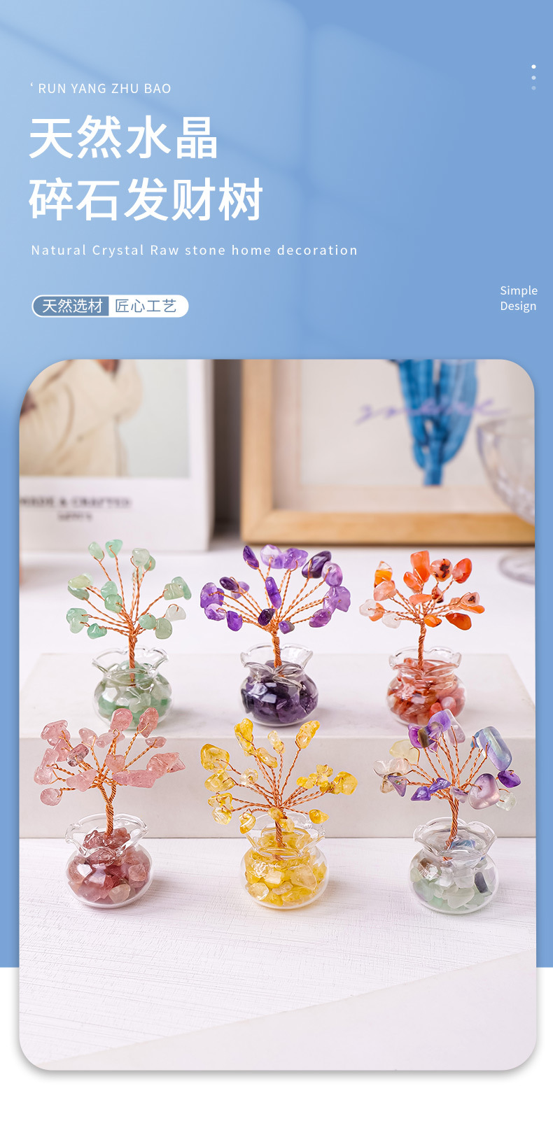 跨境热销天然水晶碎石发财树手工编织家居车载迷你水晶树小摆件