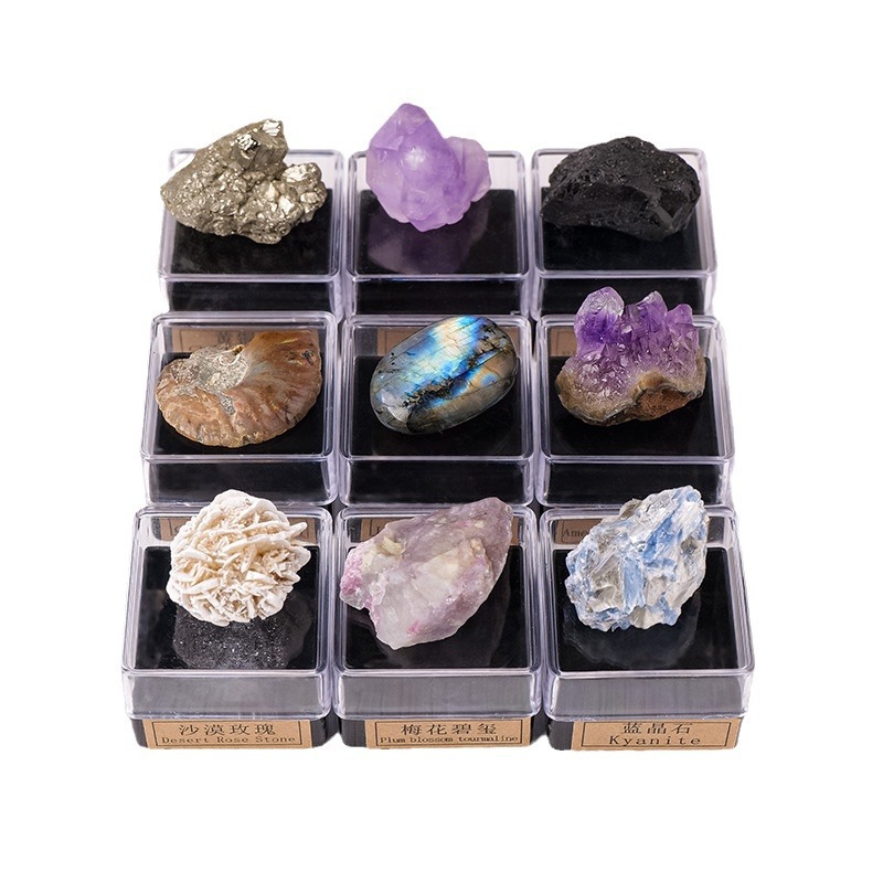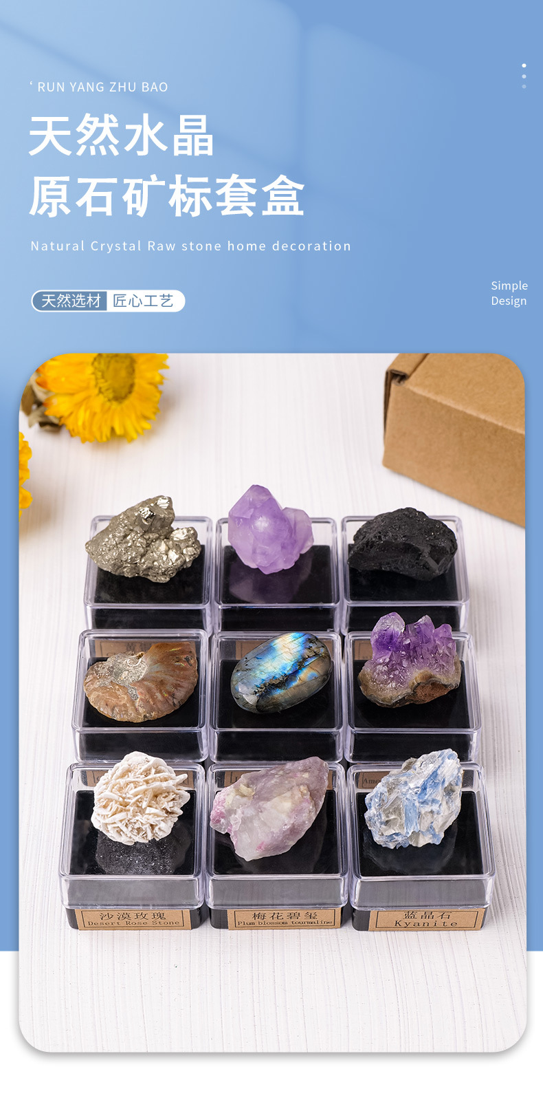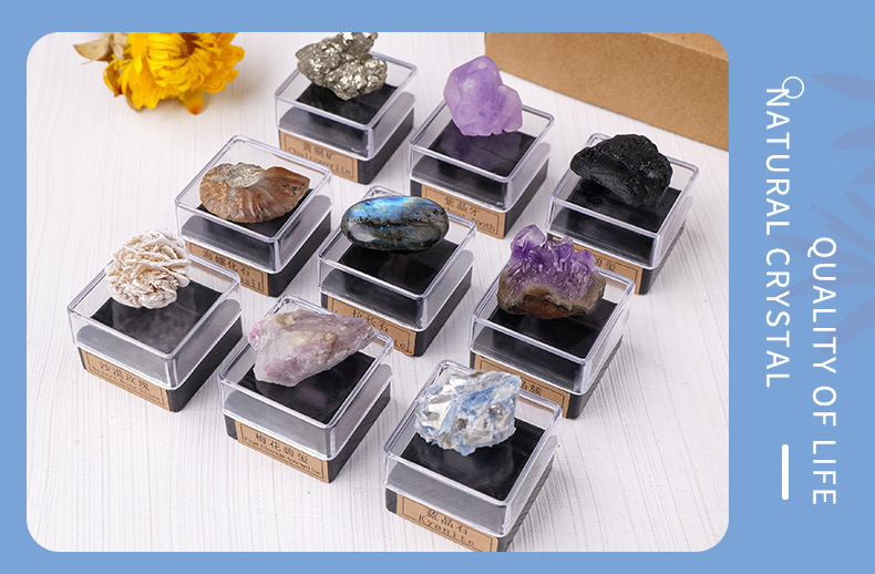 天然水晶石矿石摆件晶体宝石矿标儿童科普玩具矿物标本摆件礼物