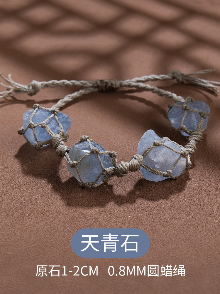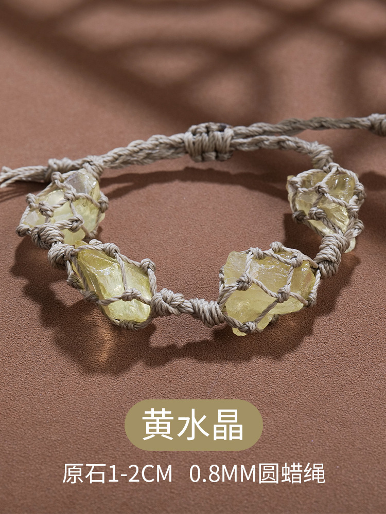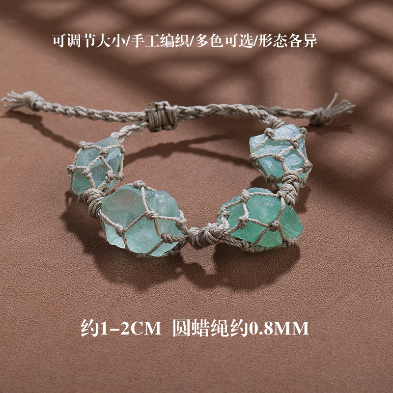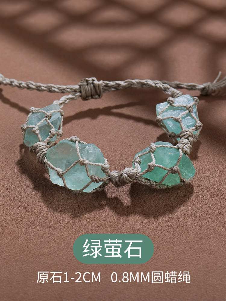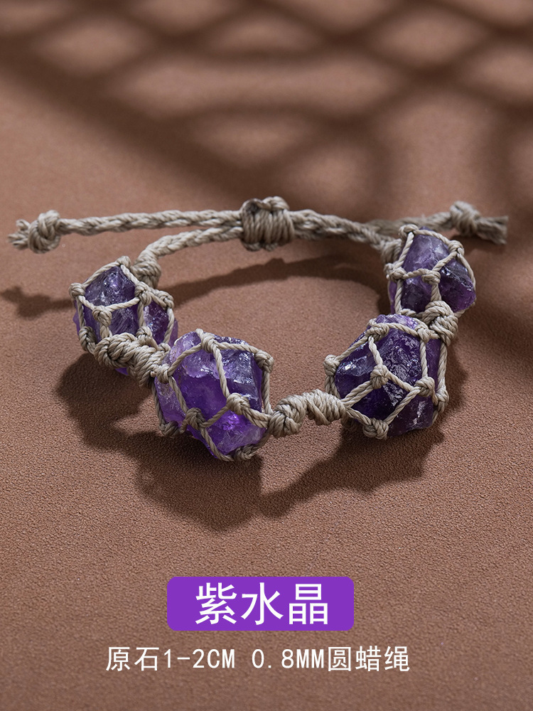 欧美时尚水晶原石网兜编织手链手串女蜡绳手编紫水晶复古手绳批发
