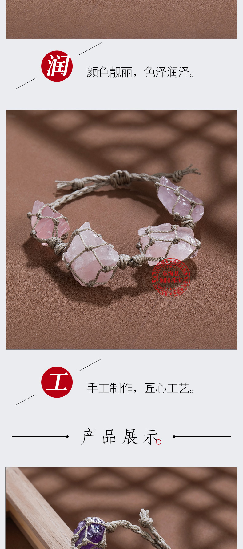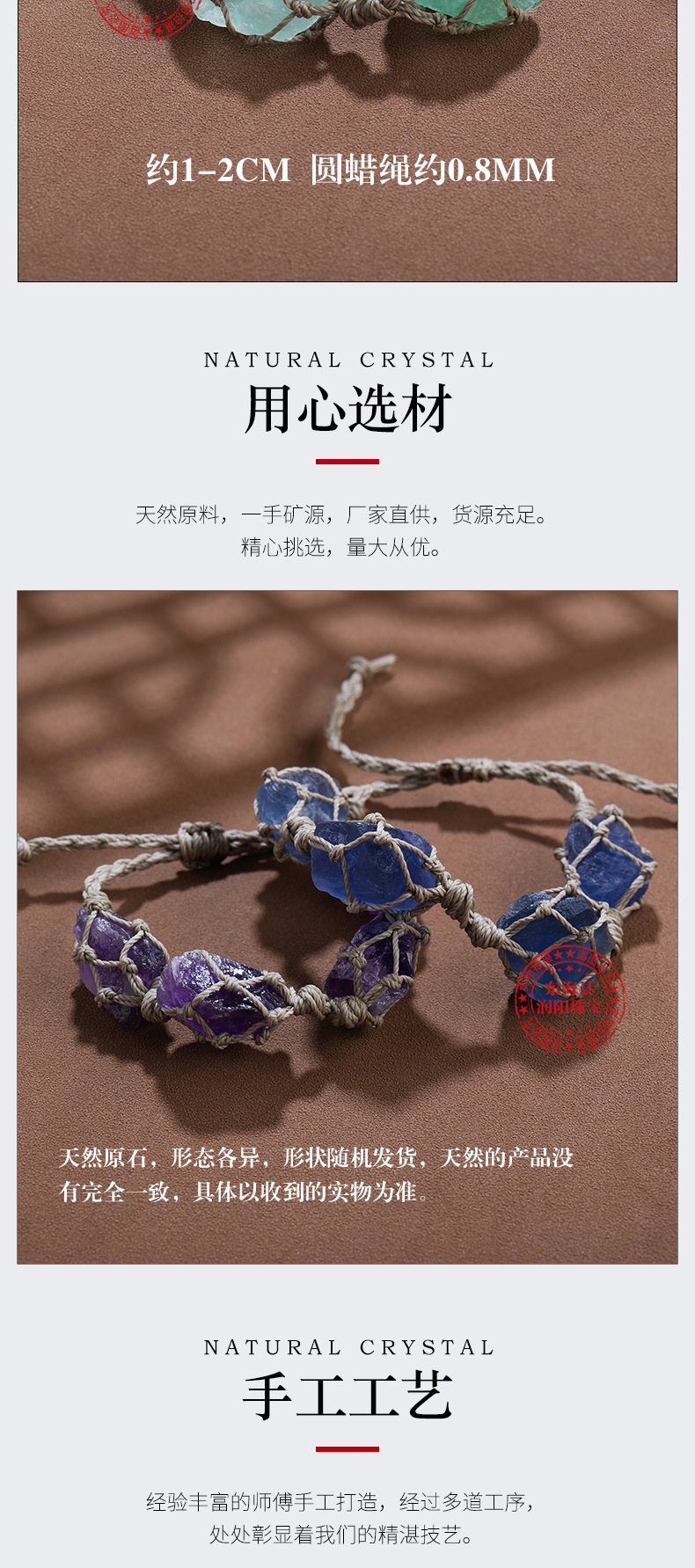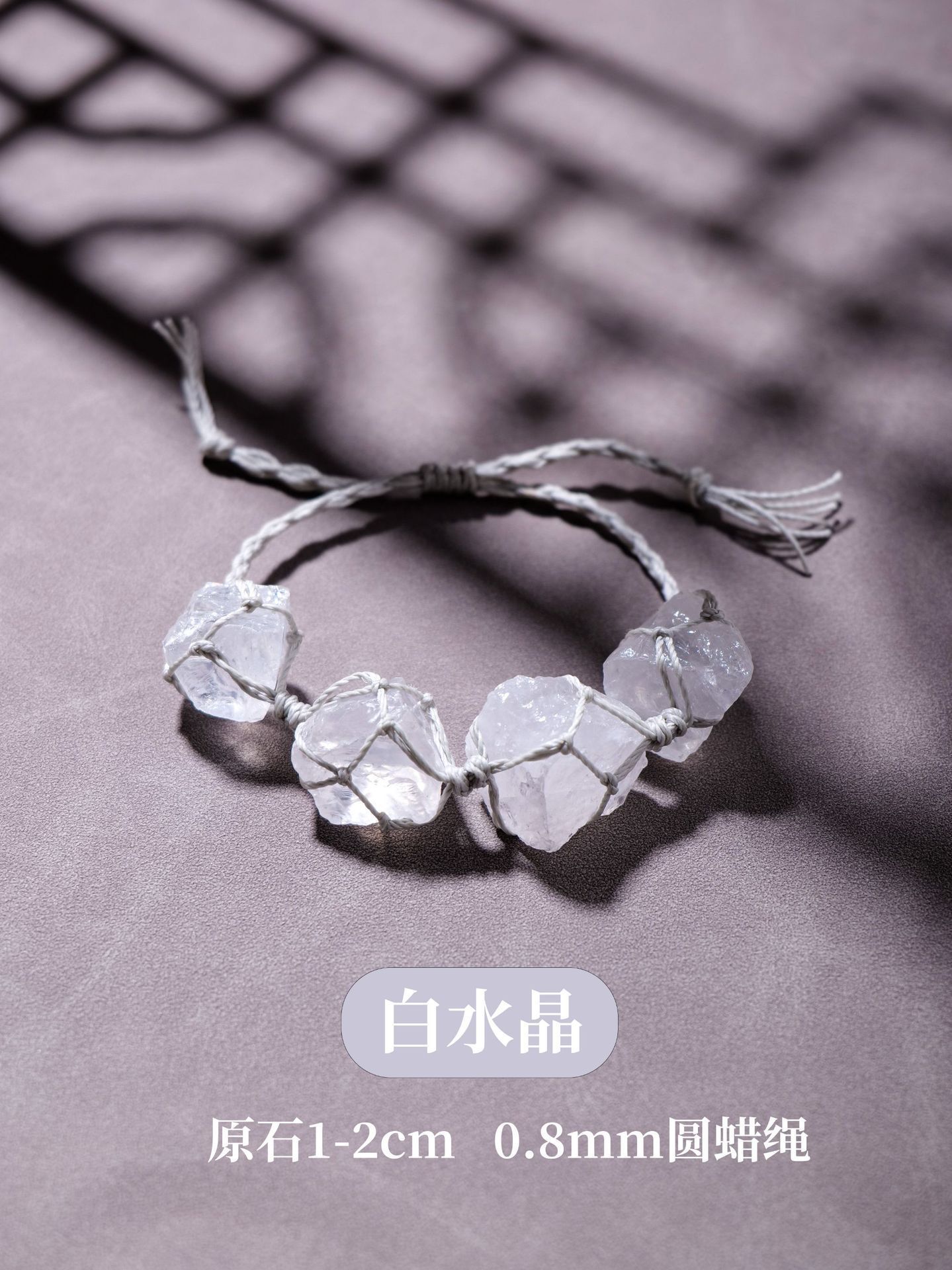 欧美时尚水晶原石网兜编织手链手串女蜡绳手编紫水晶复古手绳批发