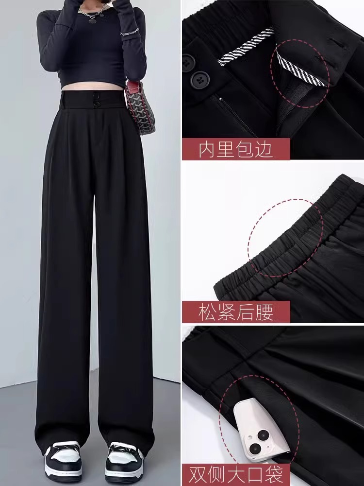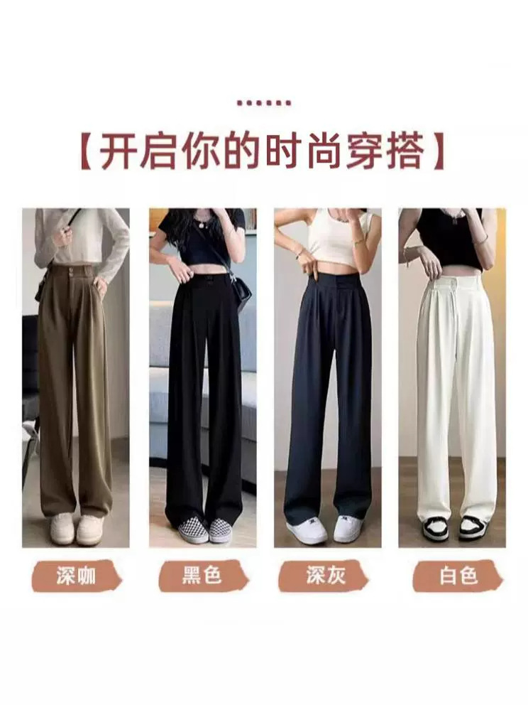 灰色西装裤女高级感垂感直筒宽松休闲小个子窄版阔腿裤子女夏长裤