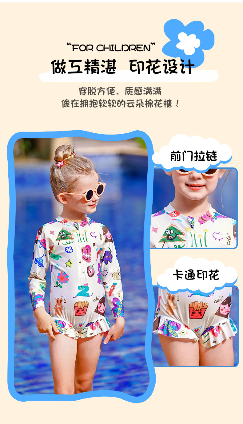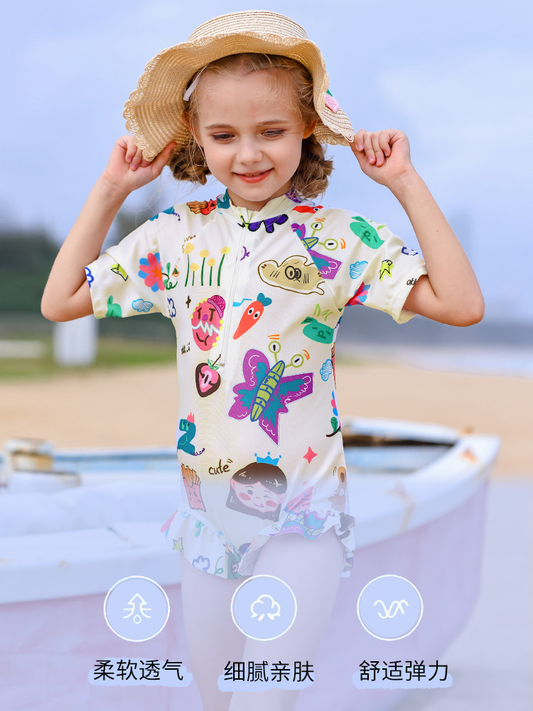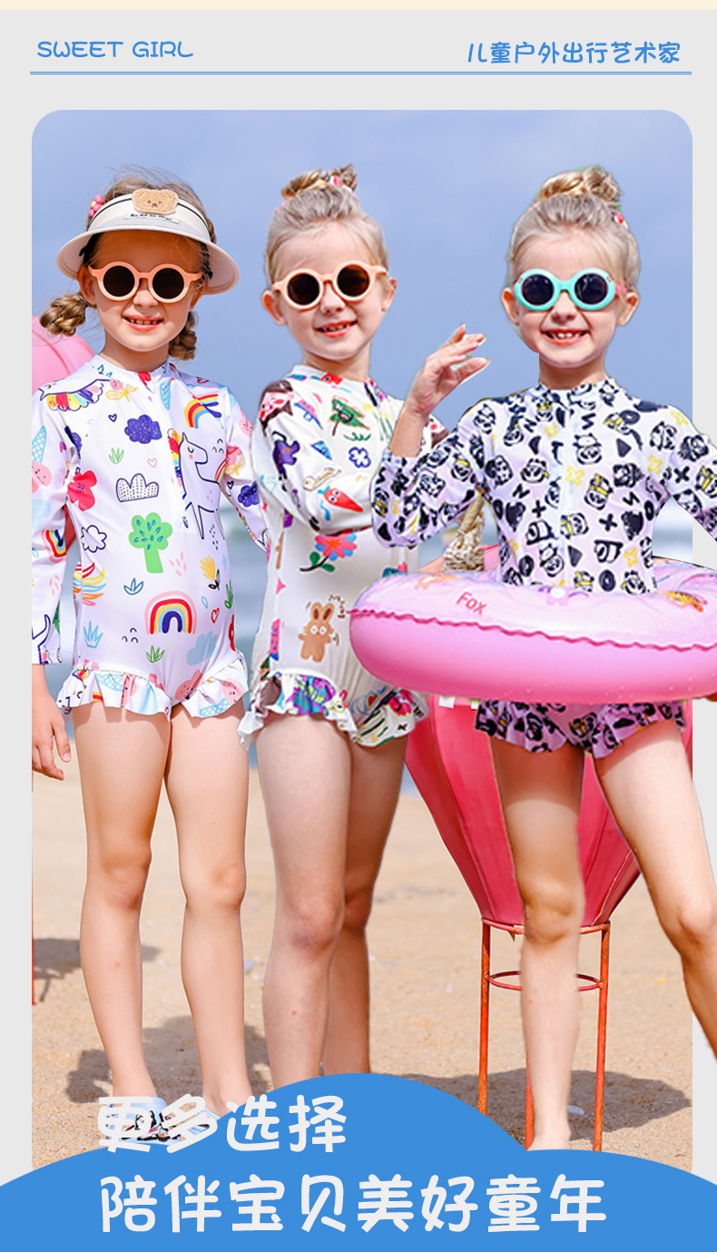 儿童泳衣女童宝宝网红时尚2024年新款夏季连体中小童专业温泉泳衣
