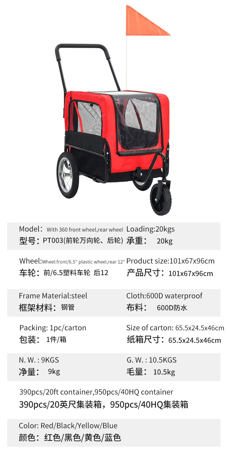 亚马逊欧美小型宠物狗自行车拖车婴儿车户外骑行两用行李购物推车