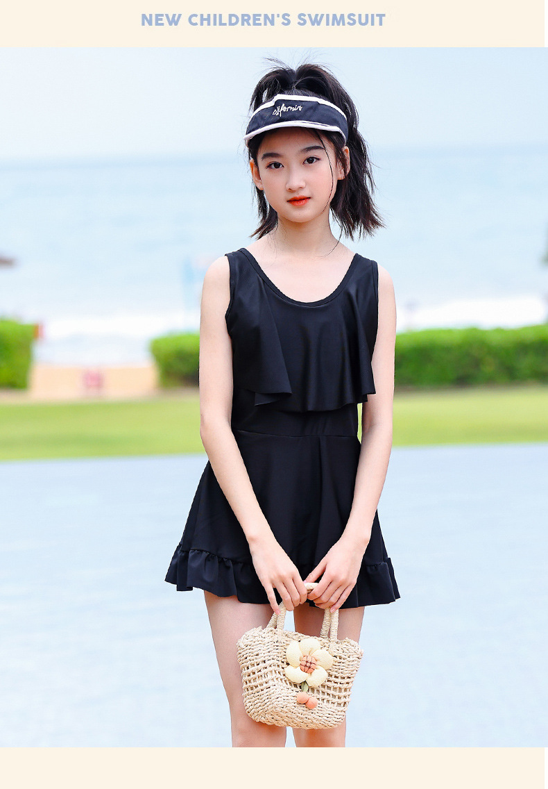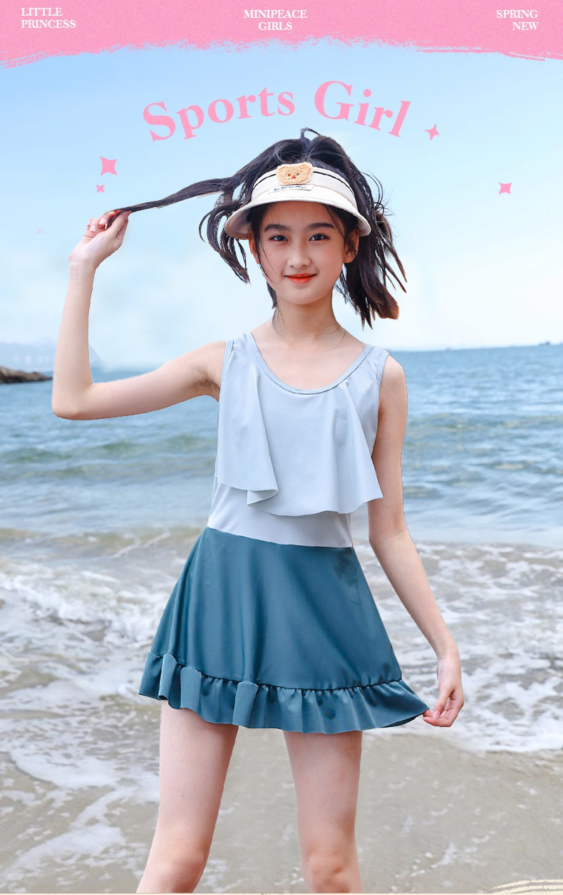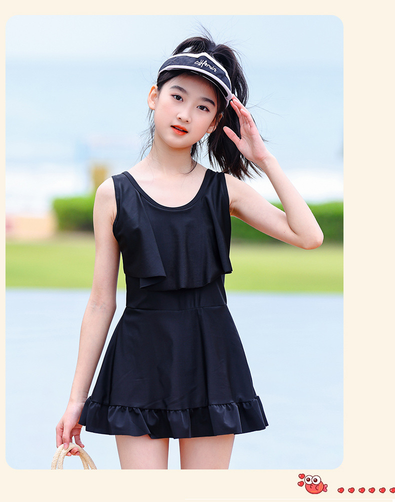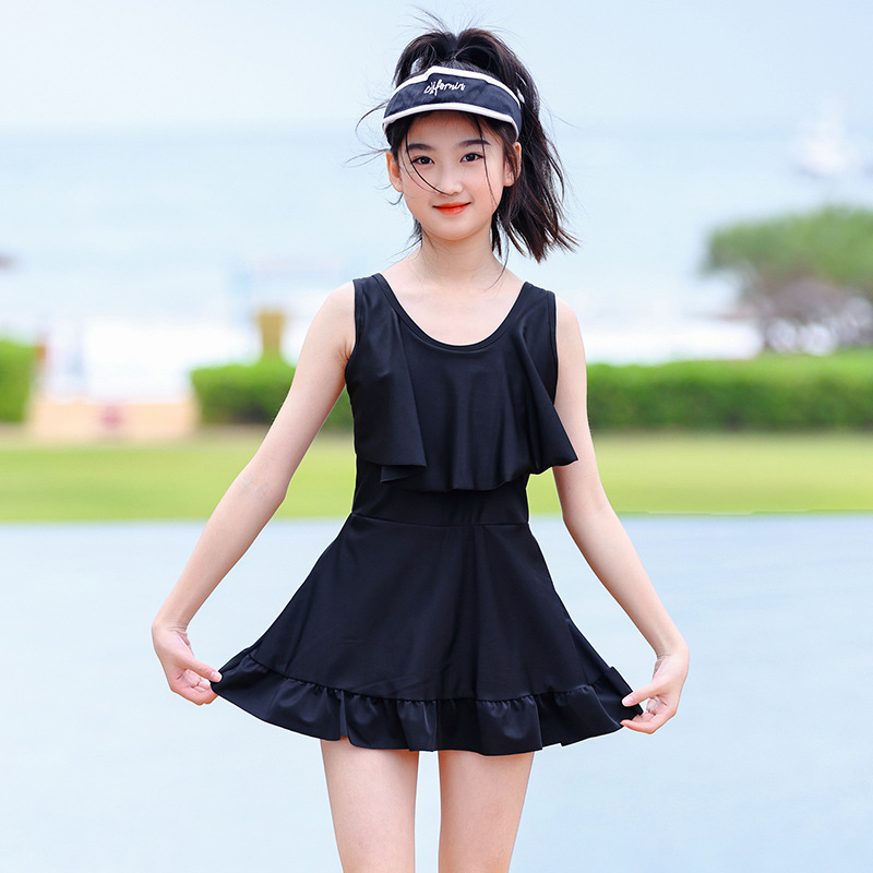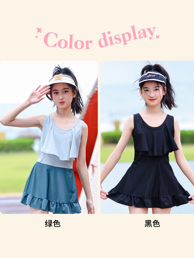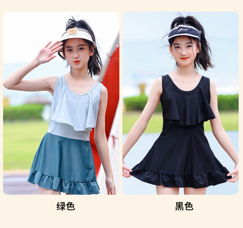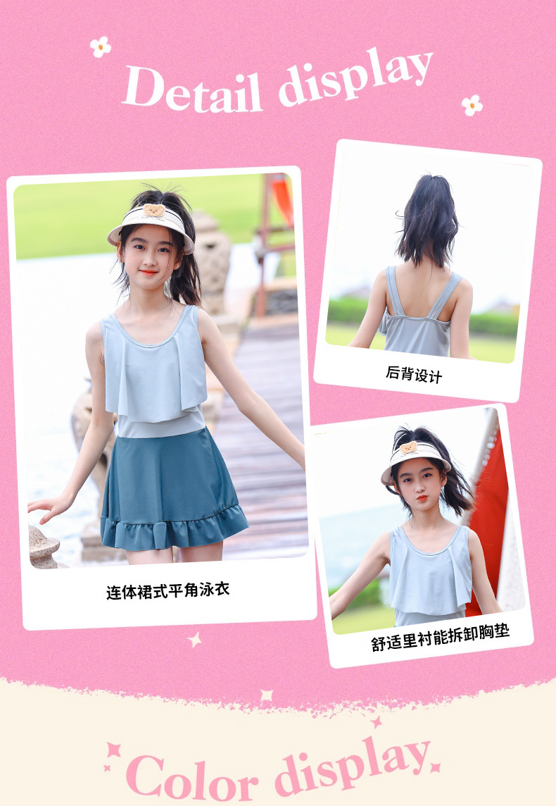 泳衣儿童女夏新款女童中大童学生少女连体裙式游泳衣温泉泳装批发