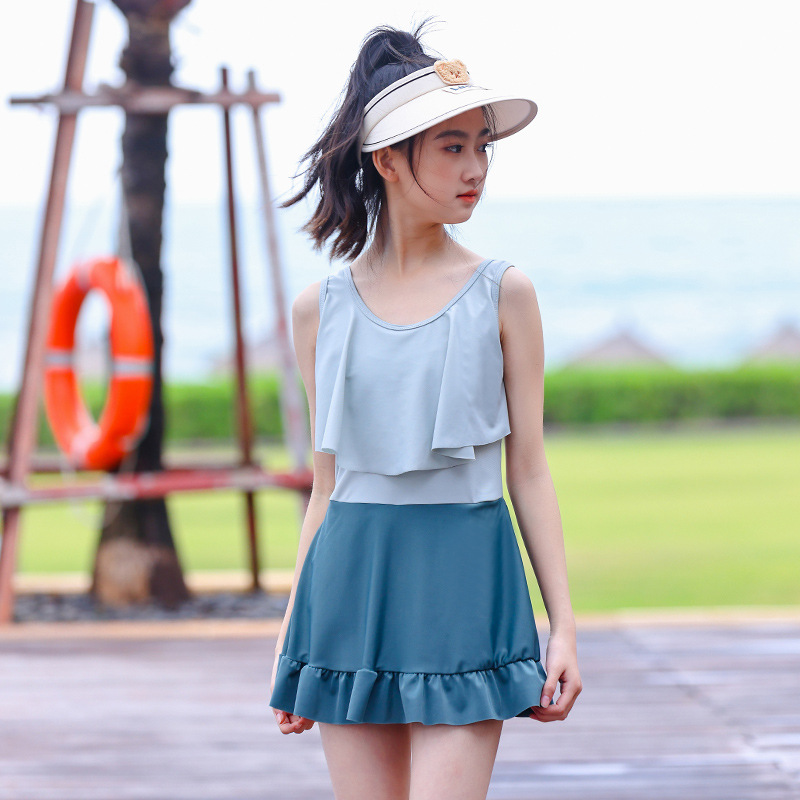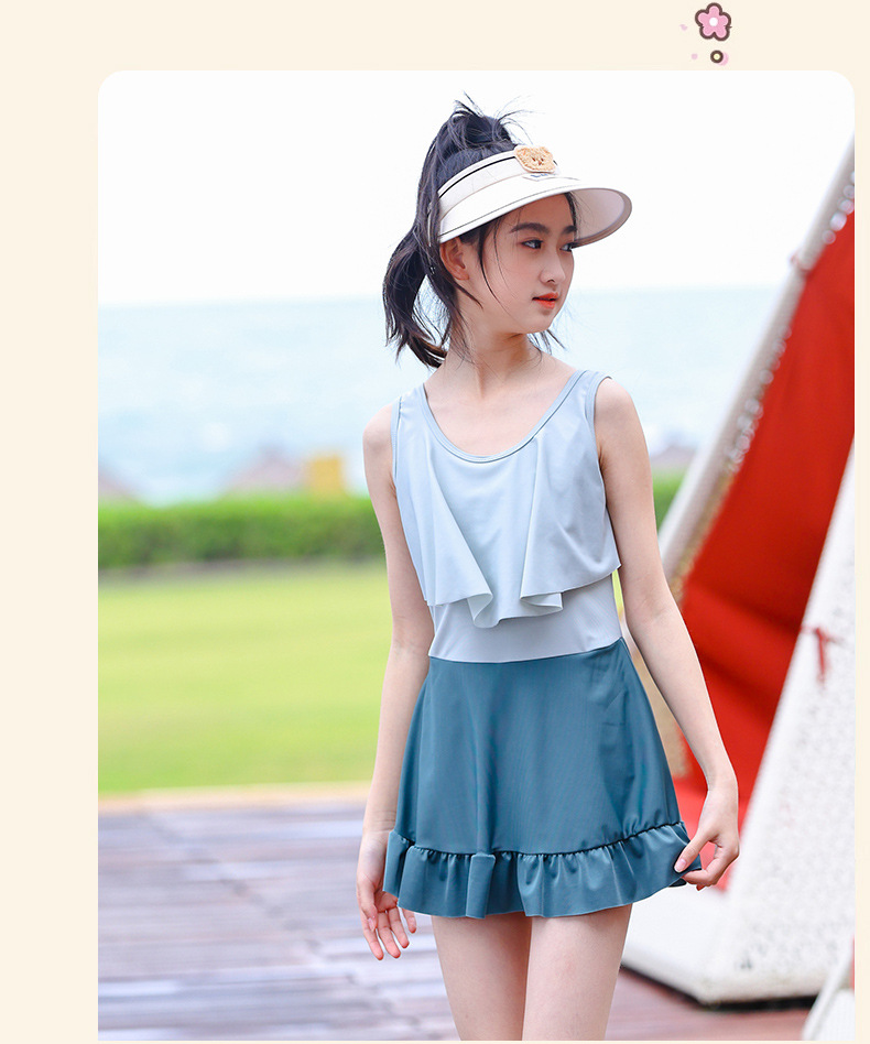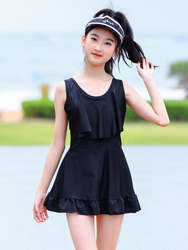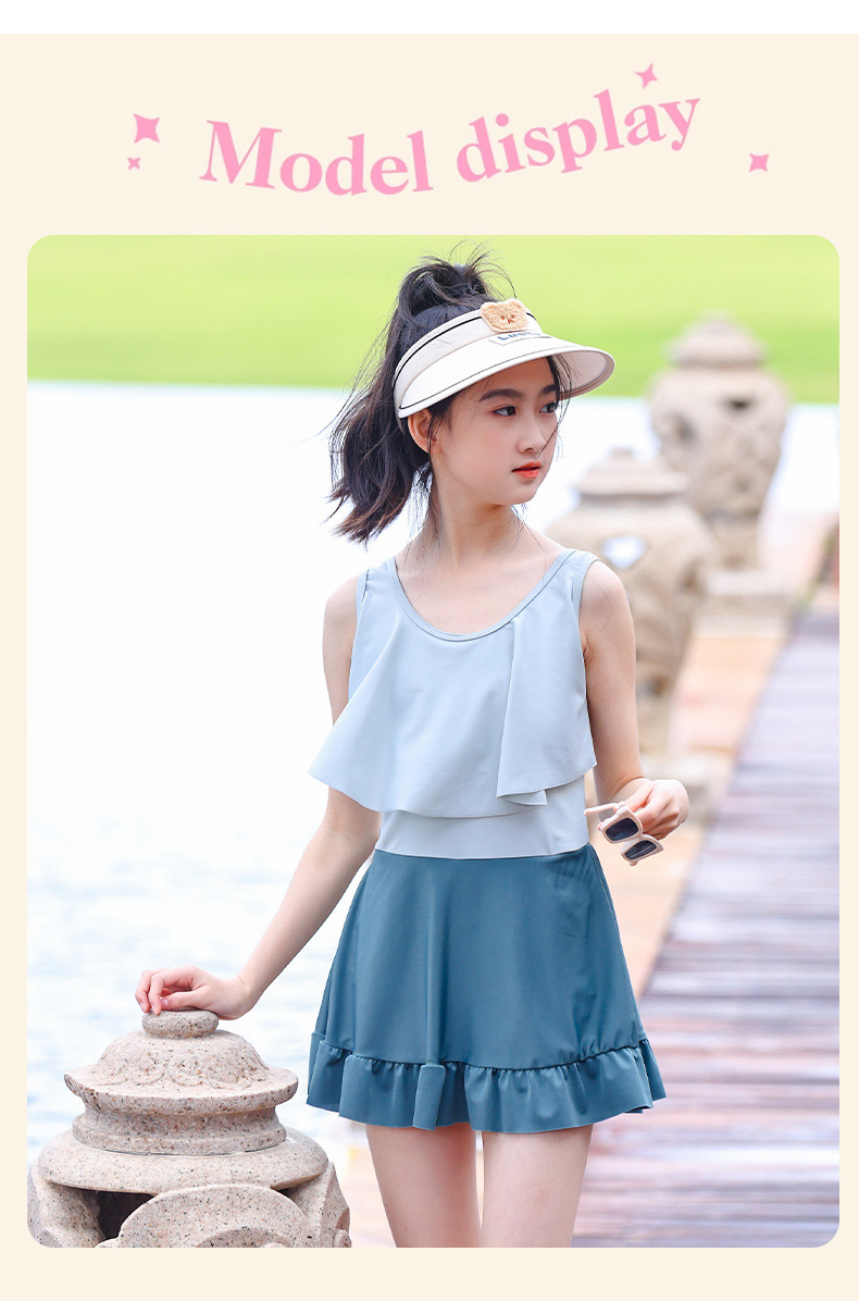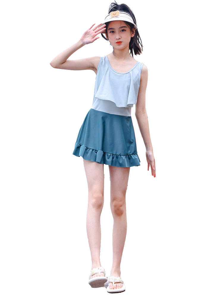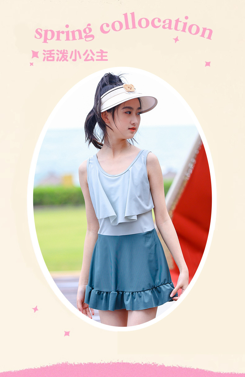 泳衣儿童女夏新款女童中大童学生少女连体裙式游泳衣温泉泳装批发
