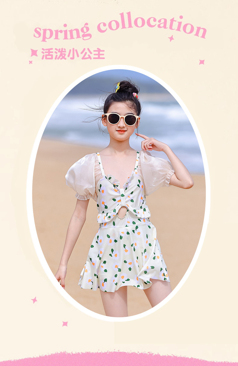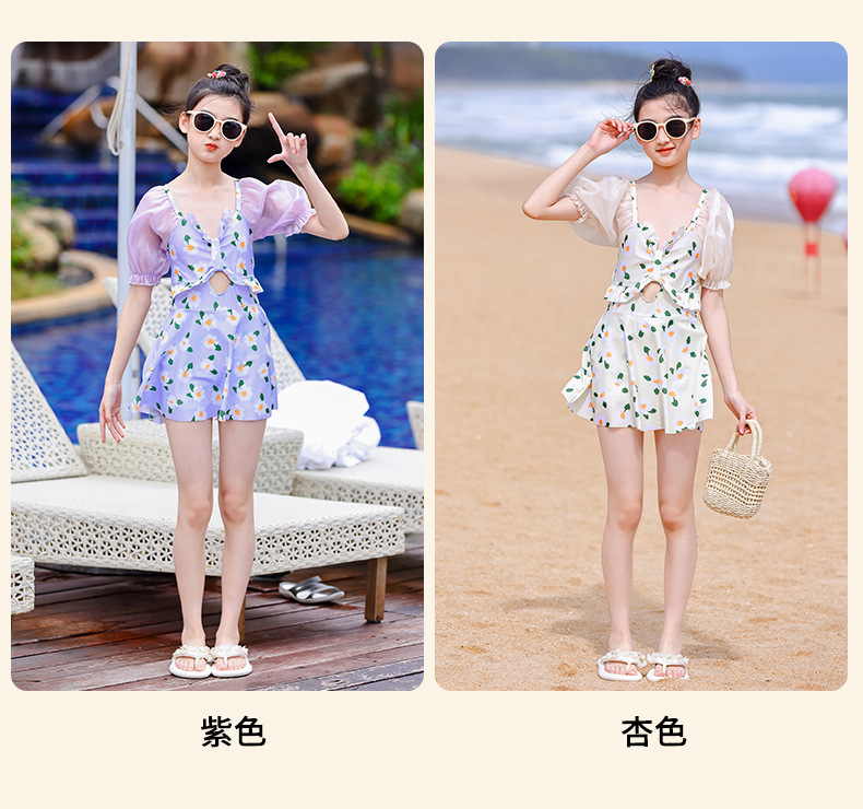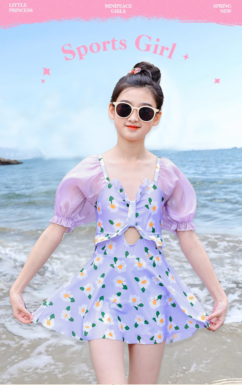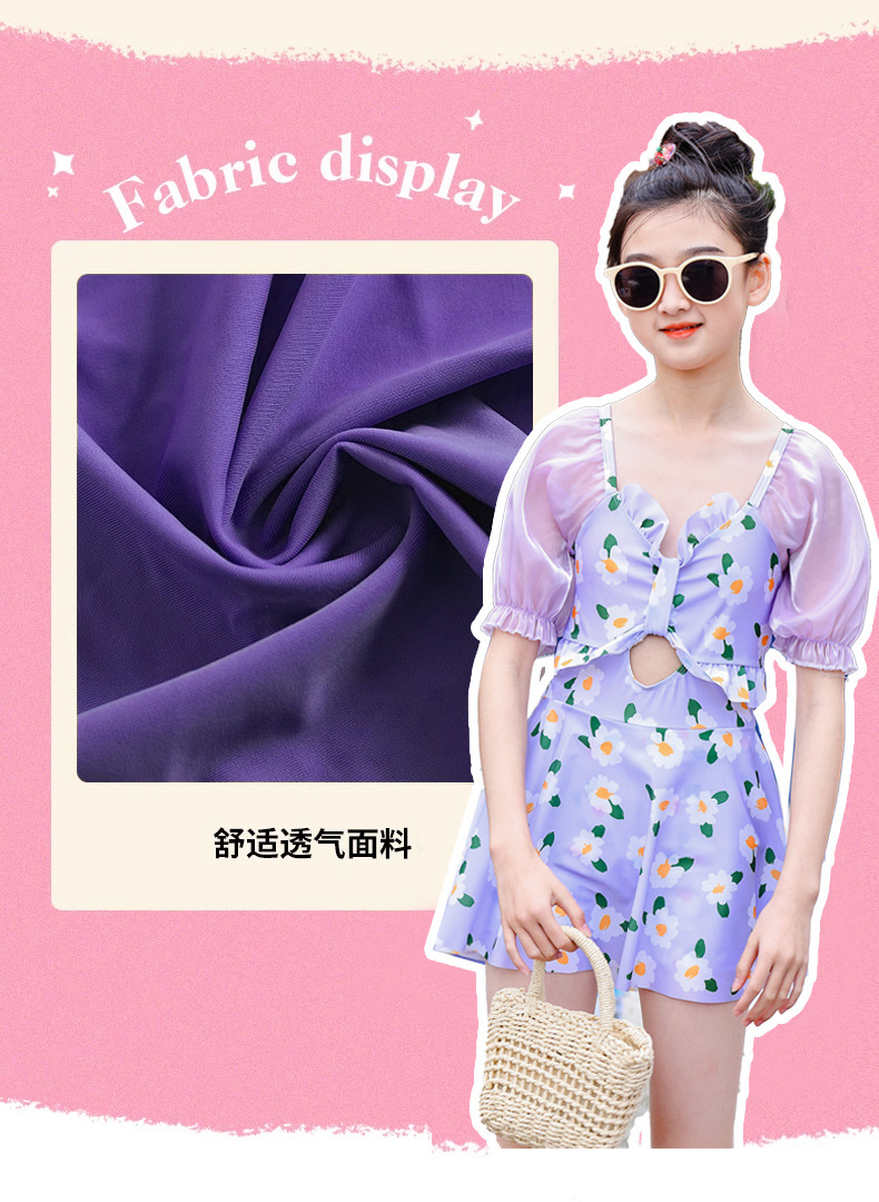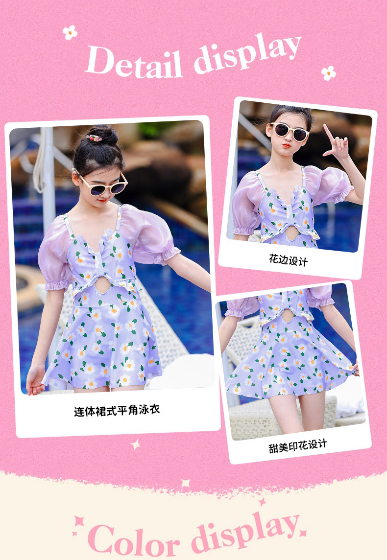 泳衣儿童女夏新款女童中大童学生少女连体裙式游泳衣温泉泳装批发