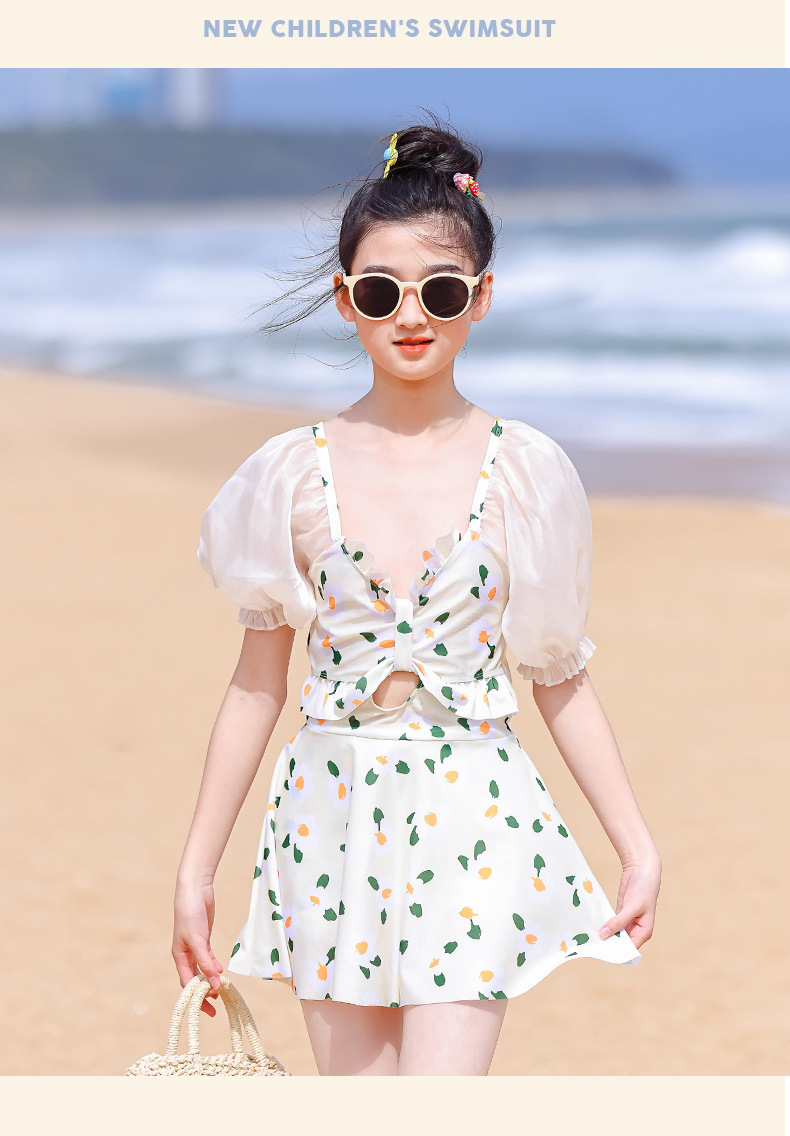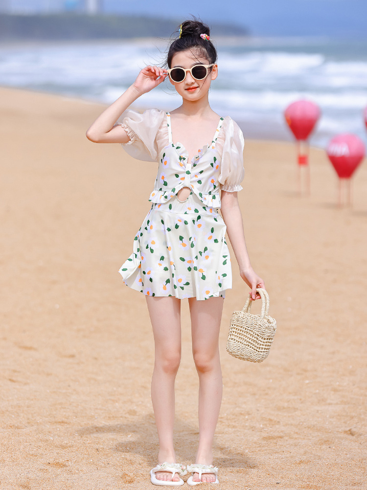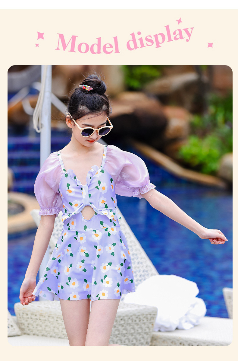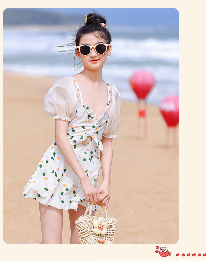泳衣儿童女夏新款女童中大童学生少女连体裙式游泳衣温泉泳装批发