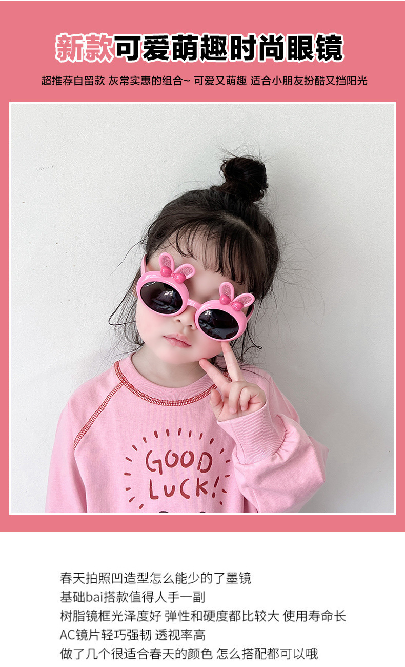 新款儿童防晒墨镜卡通造型兔子可爱拍照太阳镜玩具防紫外线偏光镜
