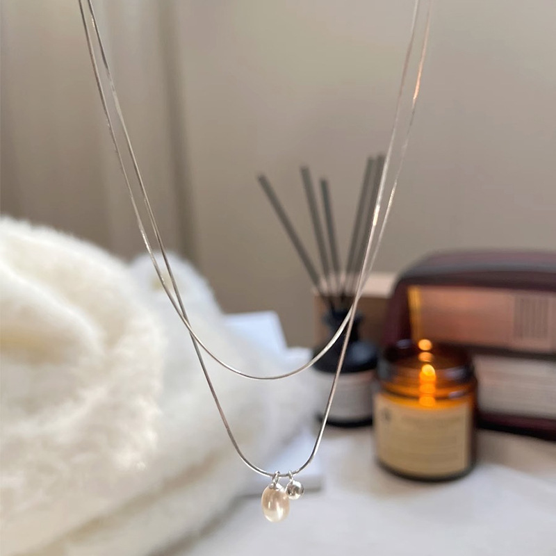 简约双层叠戴天然珍珠项链女ins冷淡风时尚个性锁骨链百搭高级感