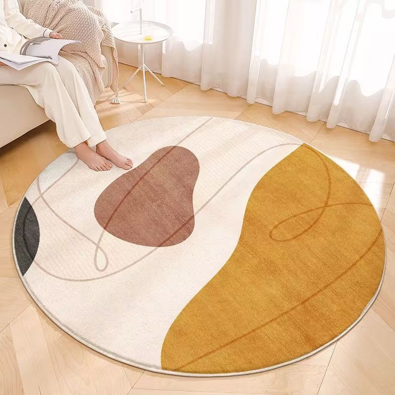 法式奶油风圆形地毯轻奢高级感仿羊绒化妆凳地垫免打理卧室床边毯