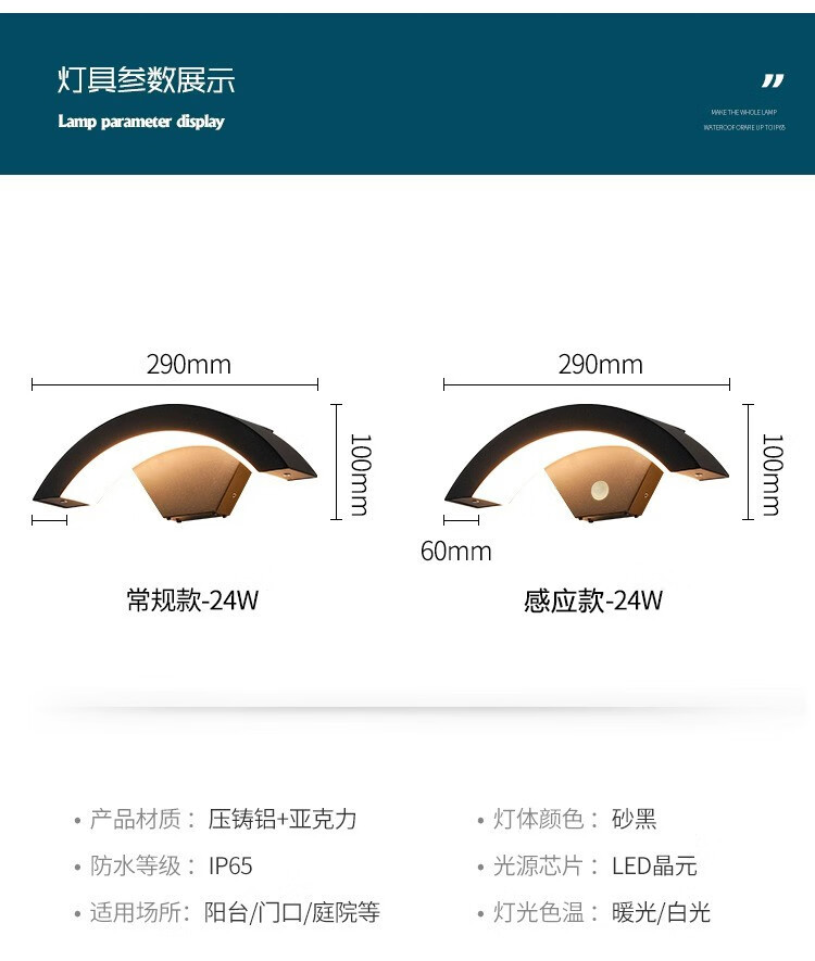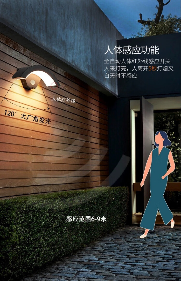 外贸专供简约led 户外壁灯防水灯个性室外感应壁灯门口灯墙灯