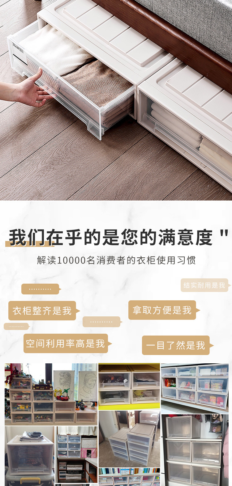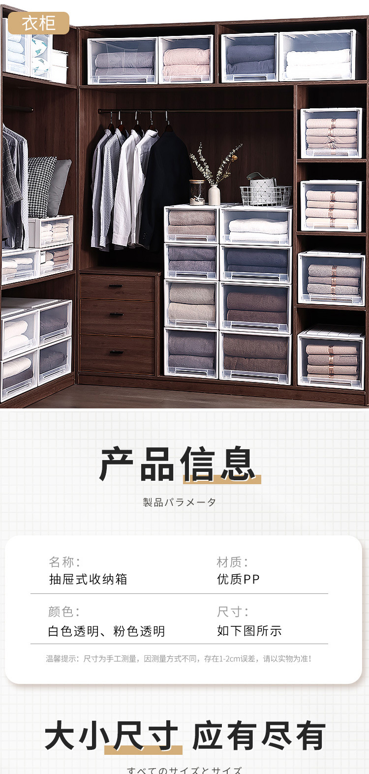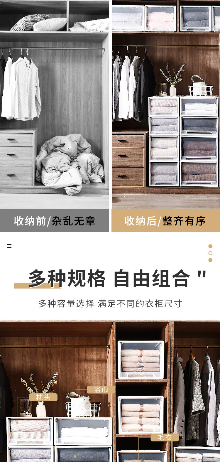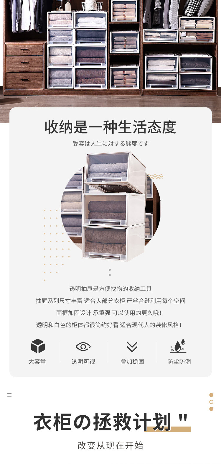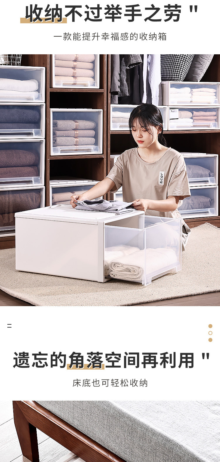 抽屉式收纳盒家用衣服收纳柜塑料衣物整理储物箱透明收纳箱批发