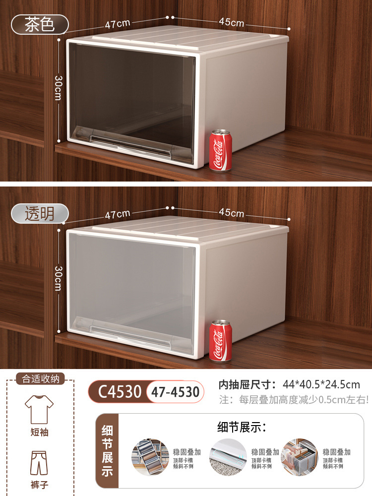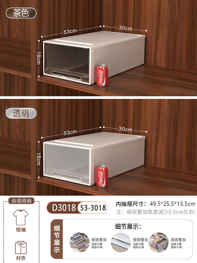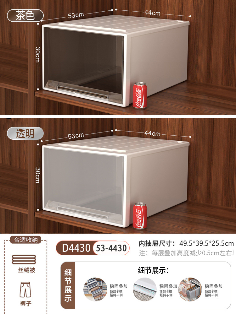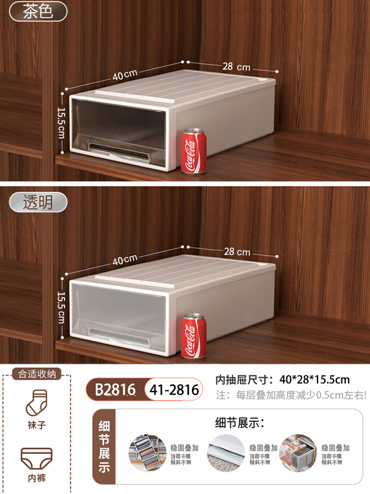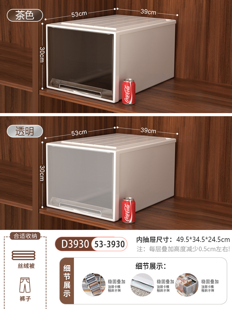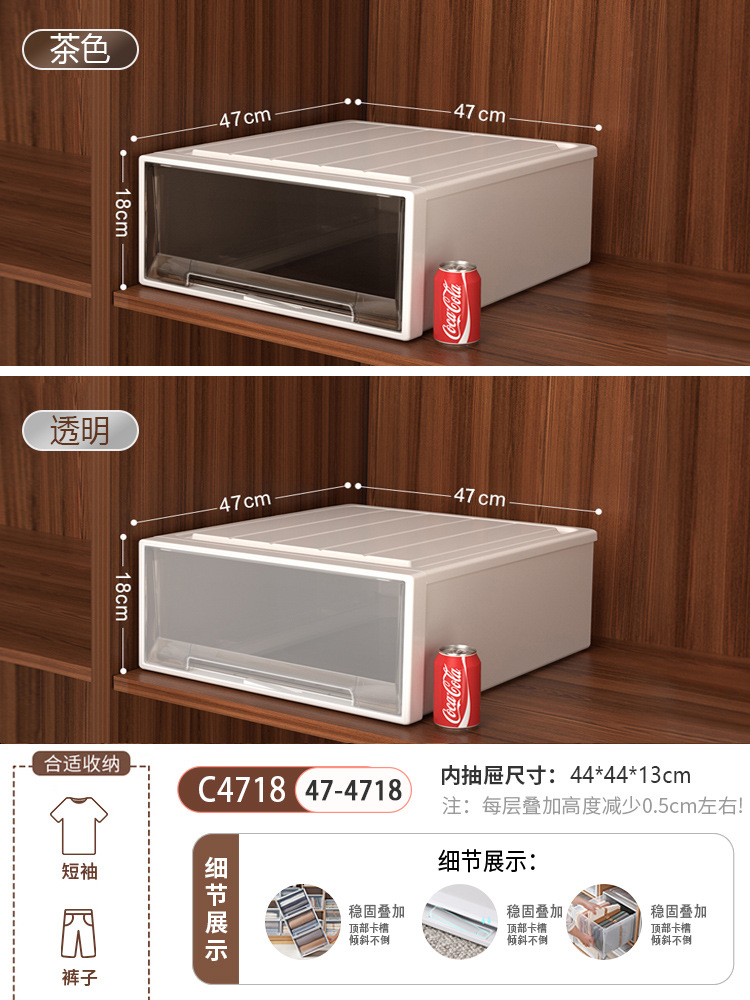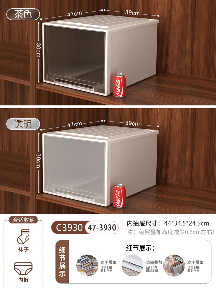 抽屉式收纳盒家用衣服收纳柜塑料衣物整理储物箱透明收纳箱批发