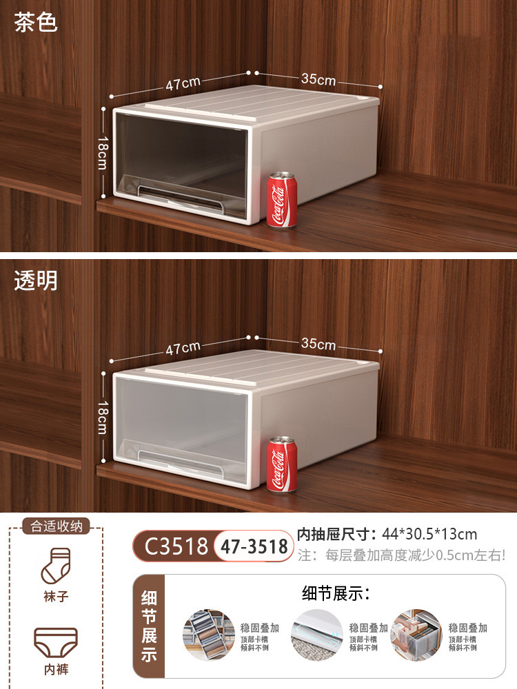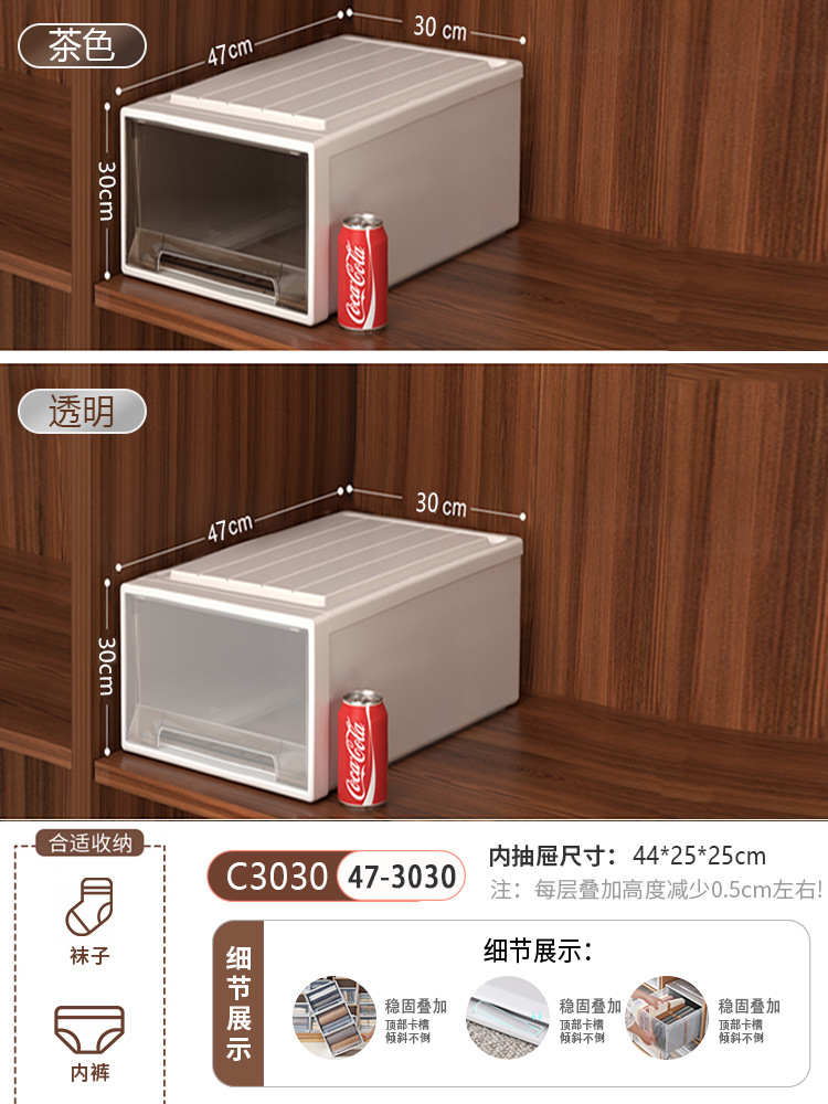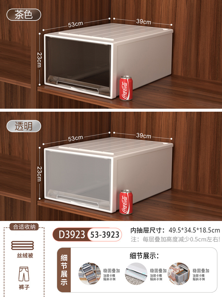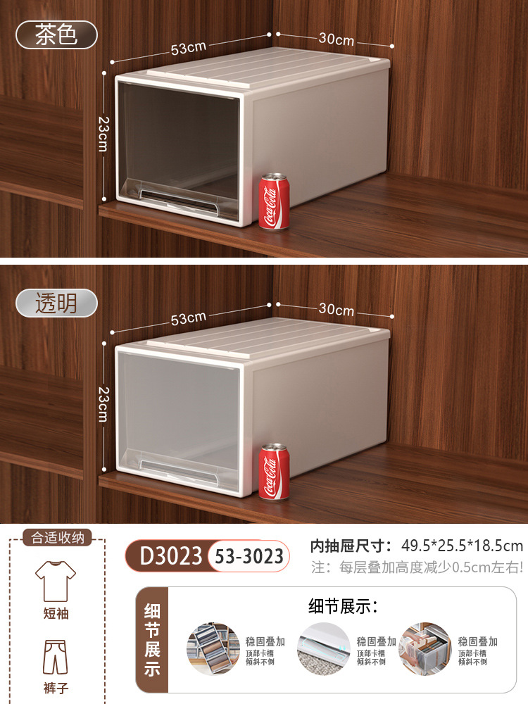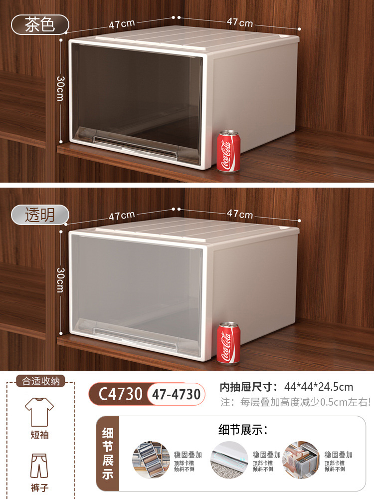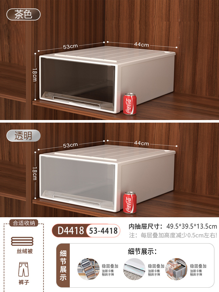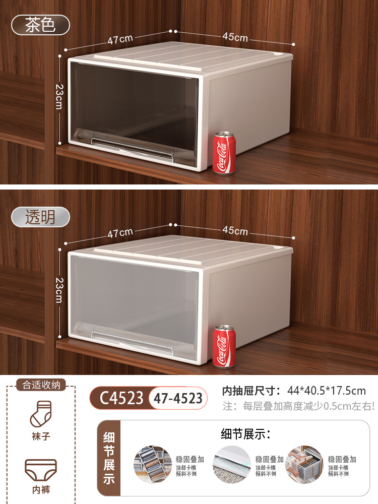 抽屉式收纳盒家用衣服收纳柜塑料衣物整理储物箱透明收纳箱批发