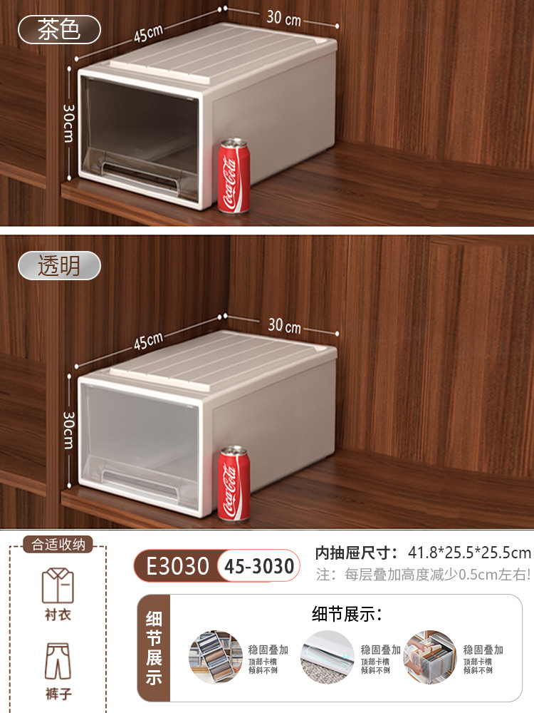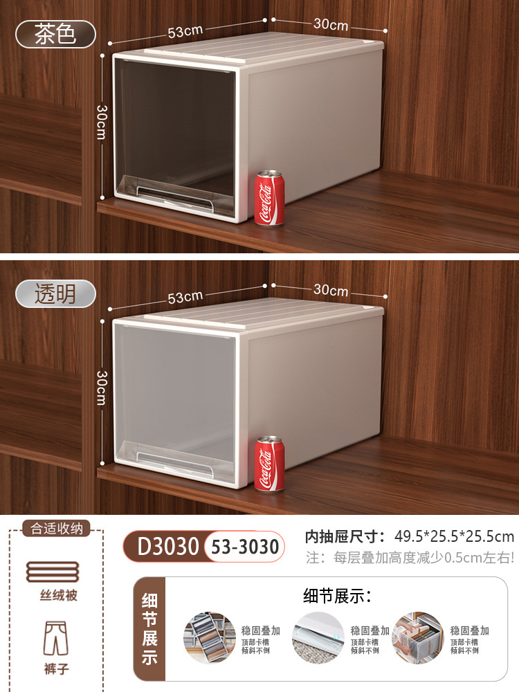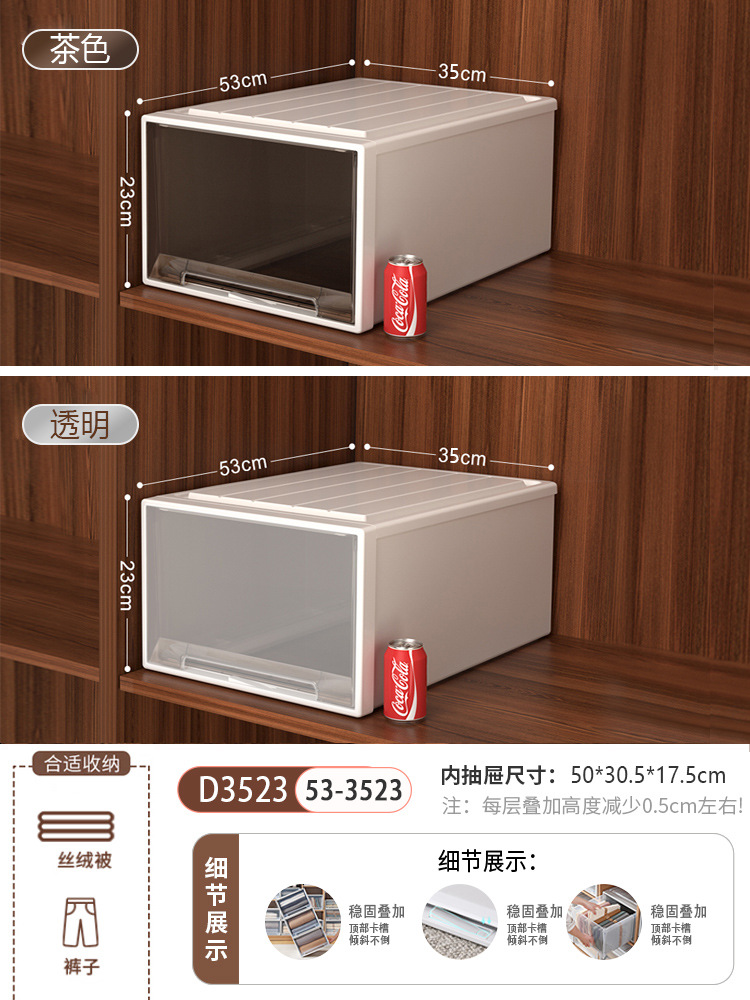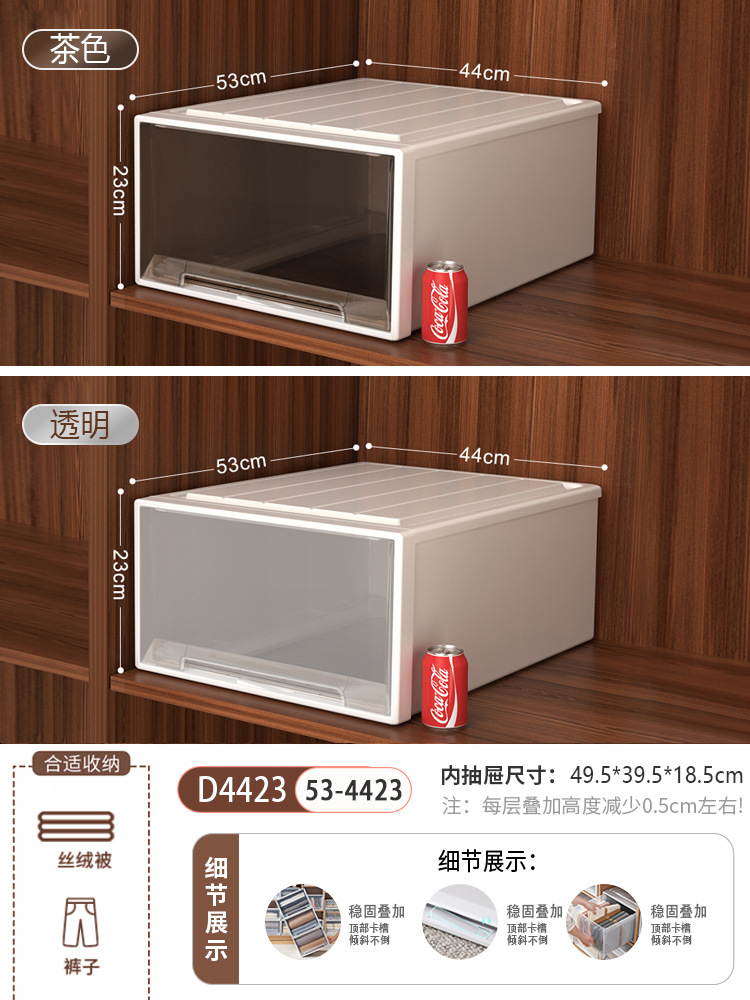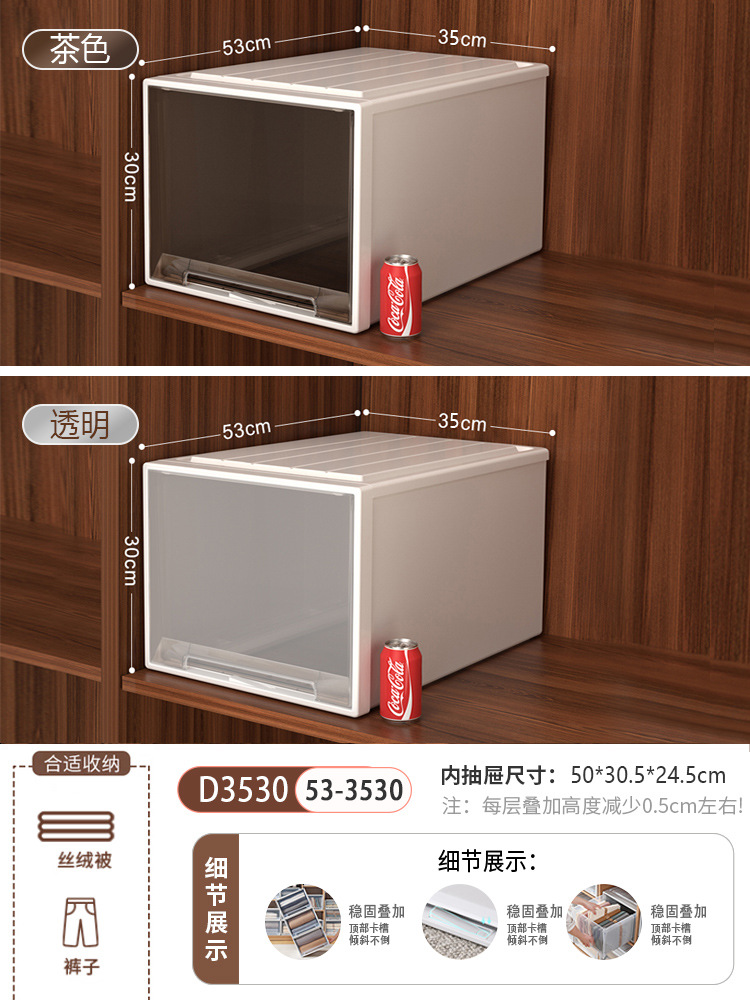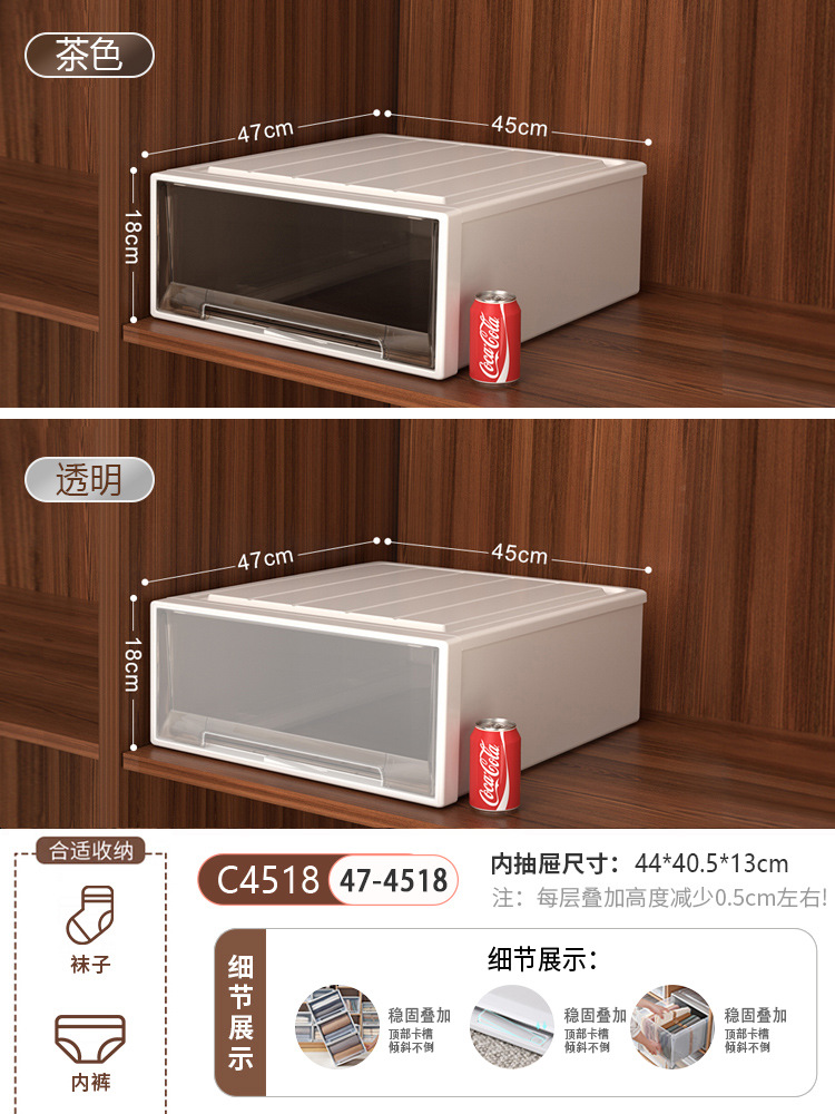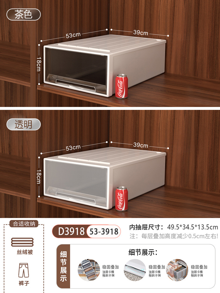 抽屉式收纳盒家用衣服收纳柜塑料衣物整理储物箱透明收纳箱批发