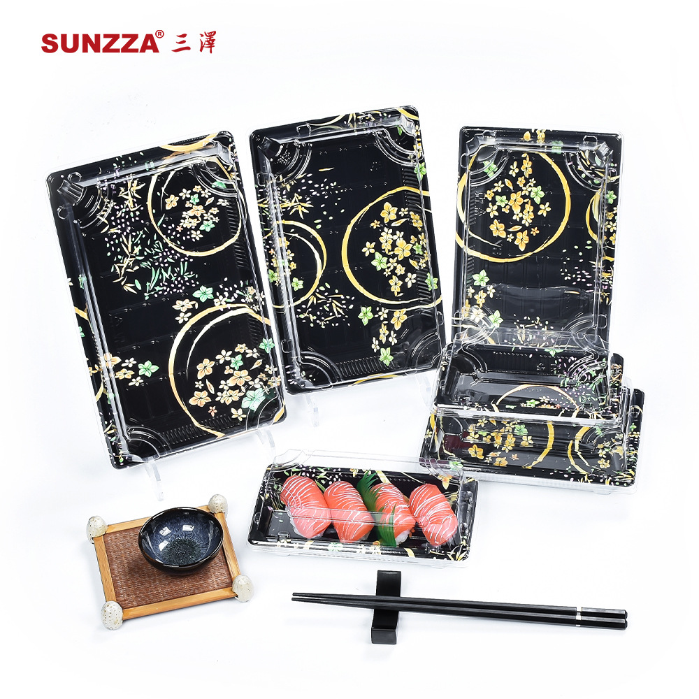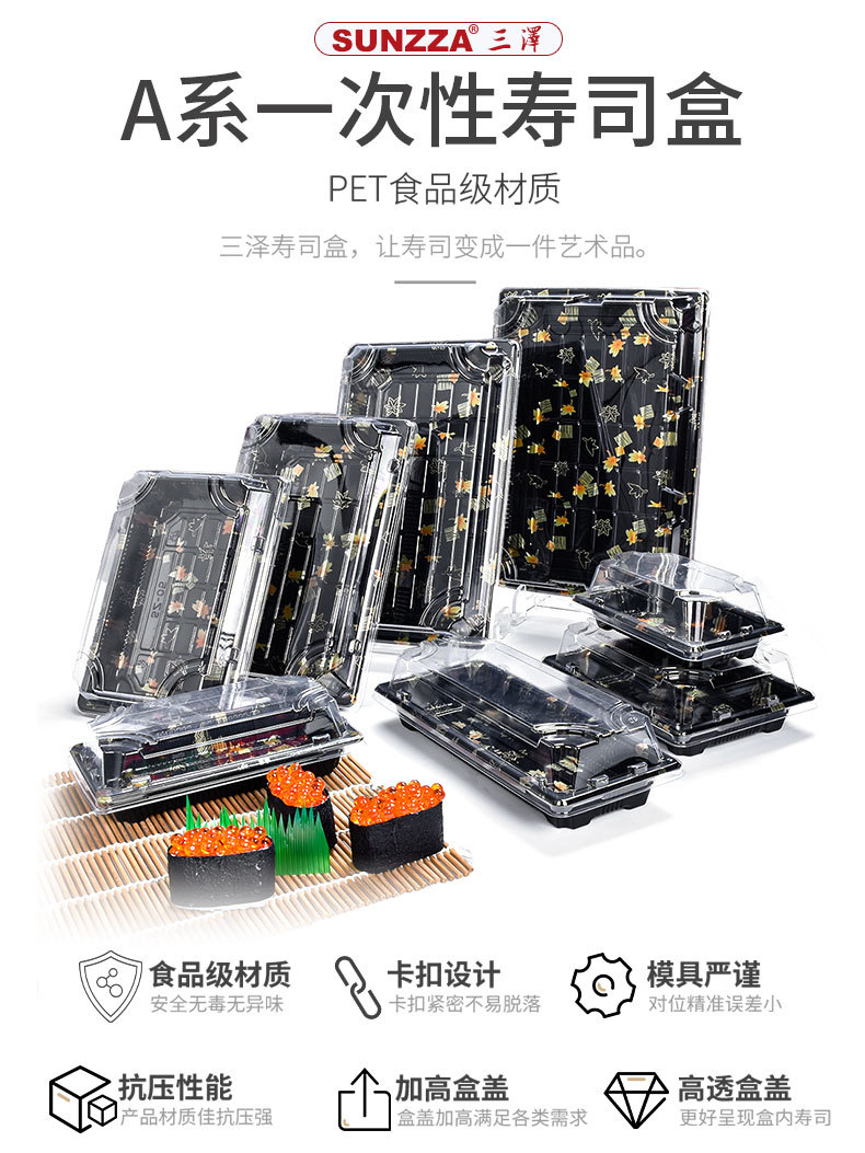 三泽SUNZZA PACKING日式一次性商用外卖寿司盒带盖刺身印花打包盒