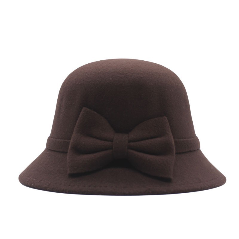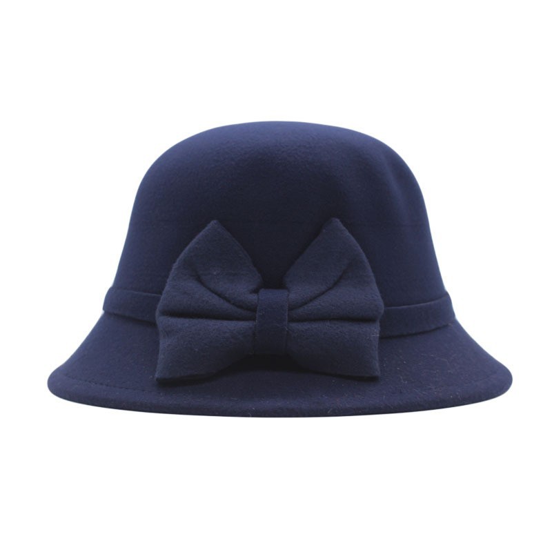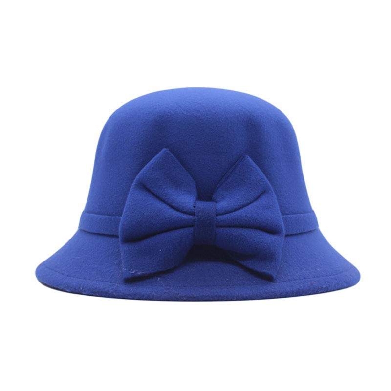 秋冬天毛呢帽韩版休闲蝴蝶结盆帽女帽子儿童甜美宽檐亲子保暖礼帽