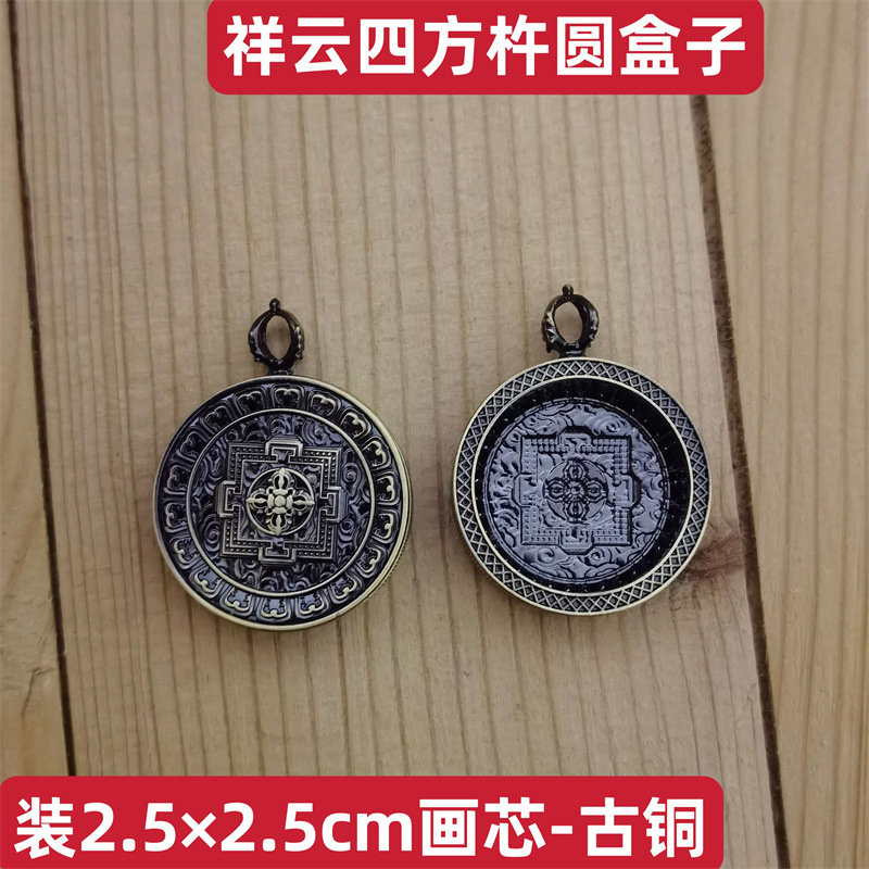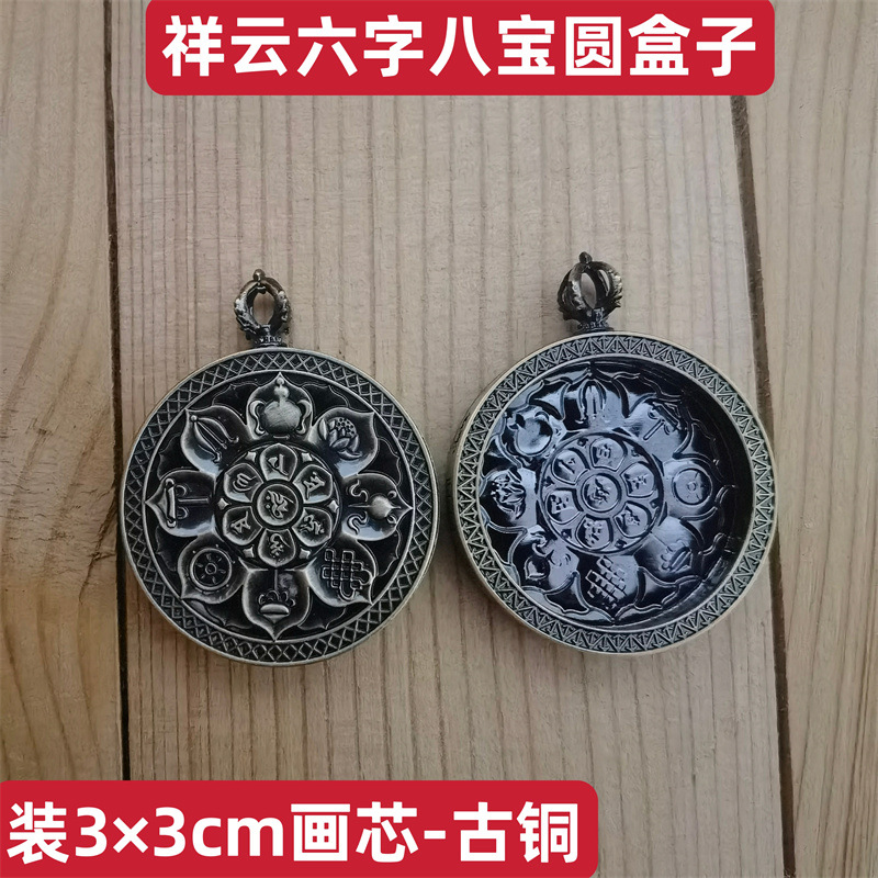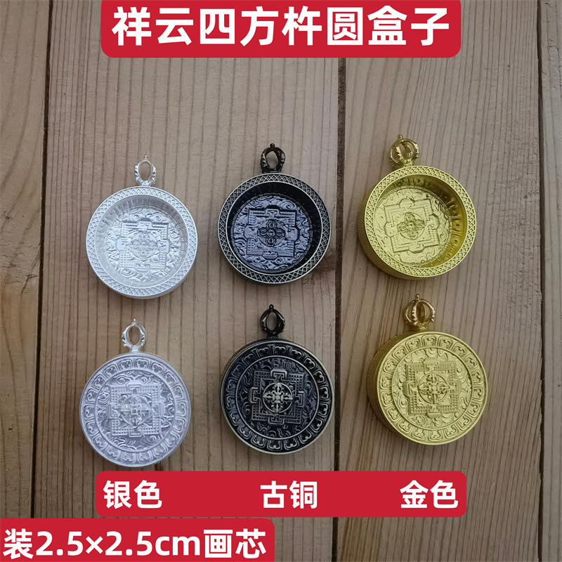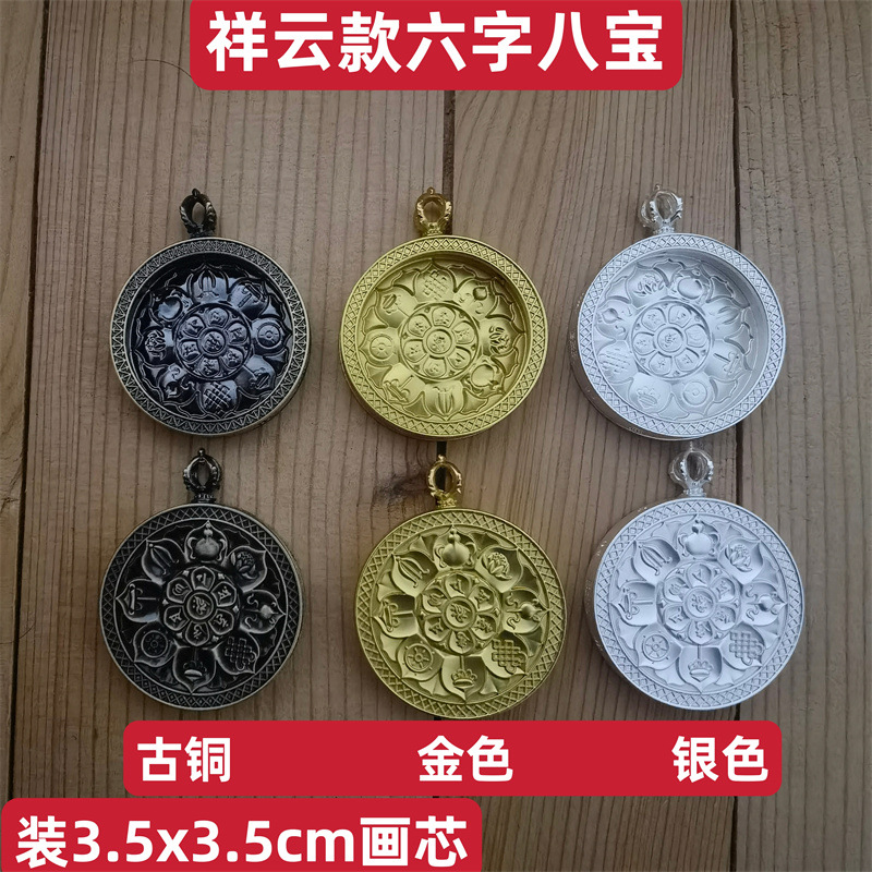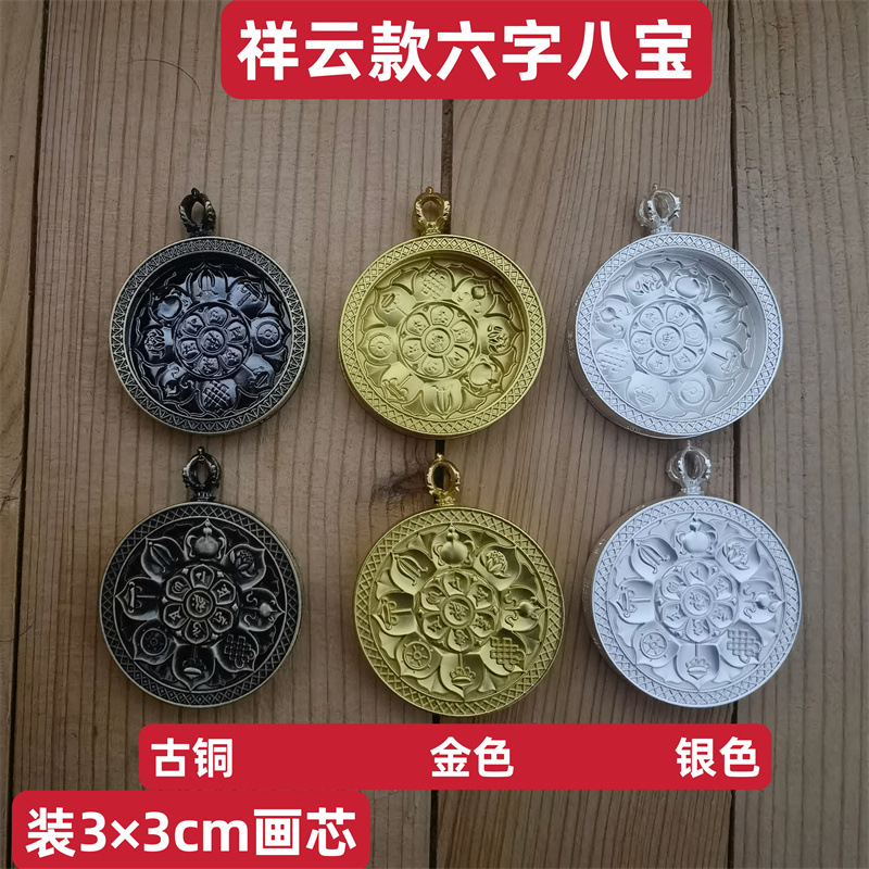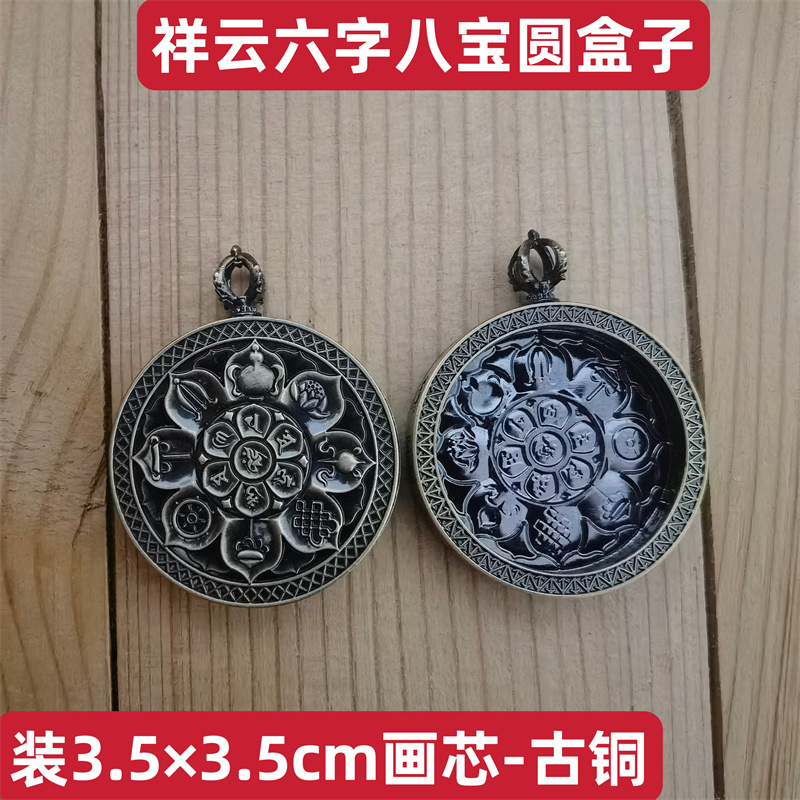 西藏唐卡盒子嘎乌盒吊坠圆盒迷你开心杵八吉祥 十字杵 六字八宝盒