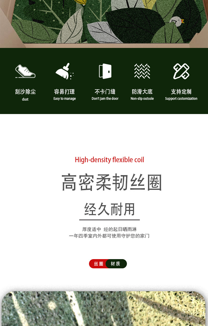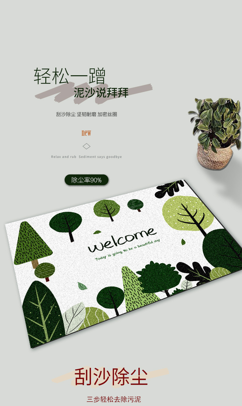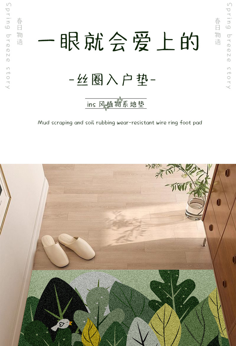 清新ins风家用丝圈地垫进门耐脏耐磨防滑脚垫pvc可裁剪入户地垫