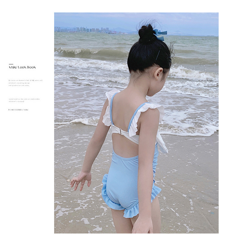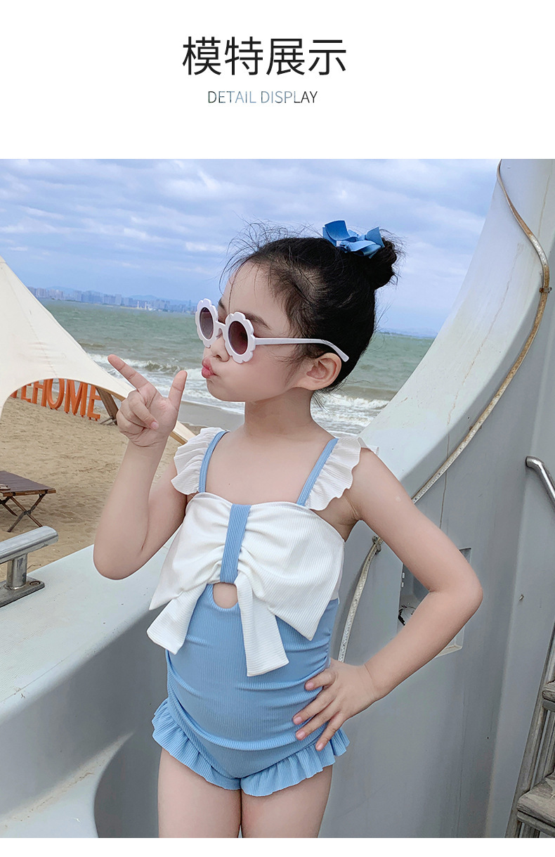 儿童泳衣新款小清新中童连体裤式游泳衣女孩宝宝防晒速干女童泳装