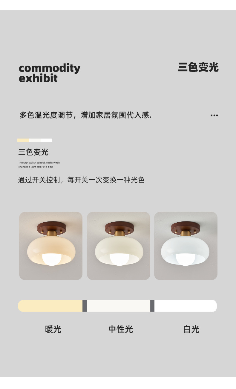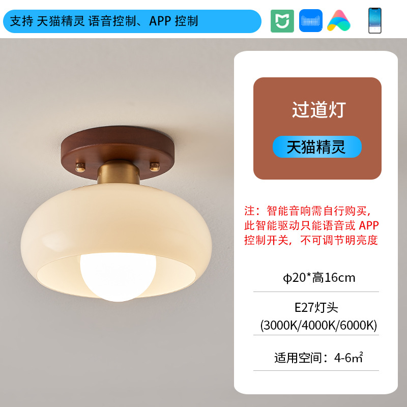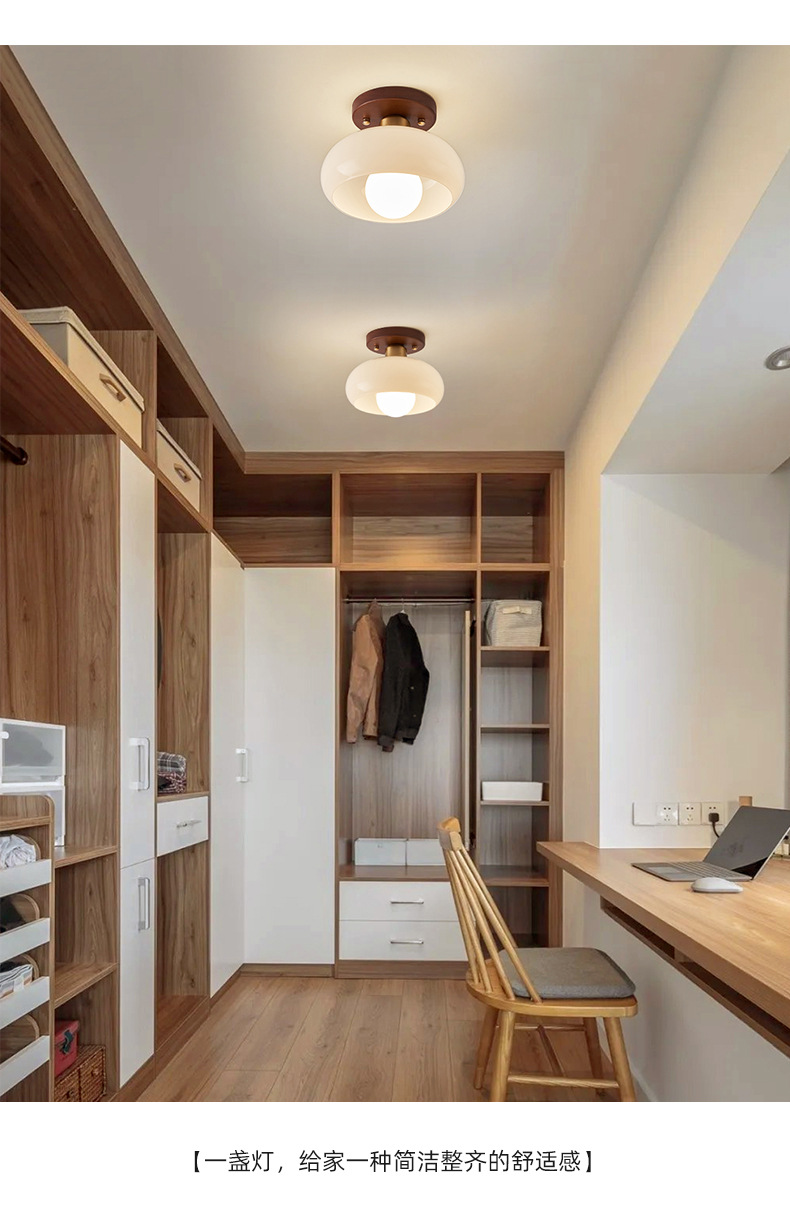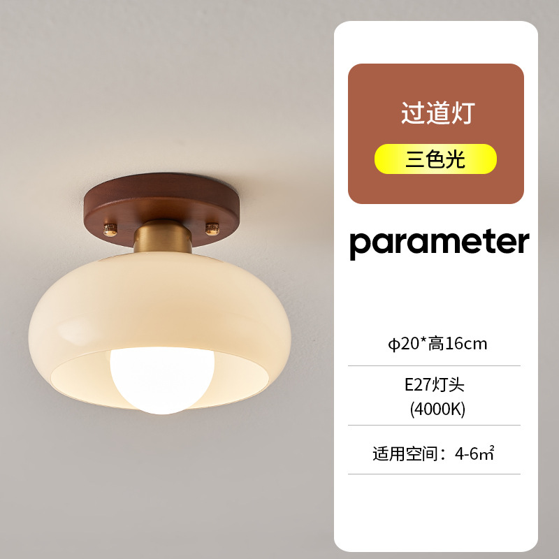 外贸专供过道灯走廊灯中式玄关吸顶灯简约胡桃色侘寂风入户门厅灯