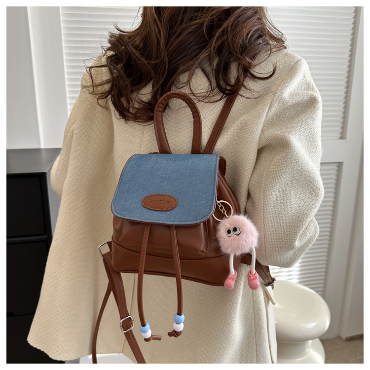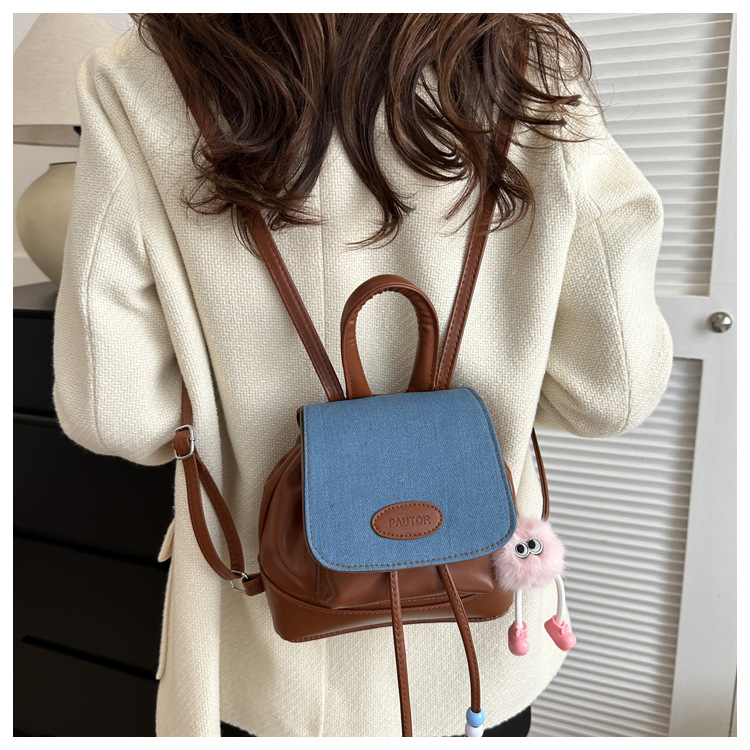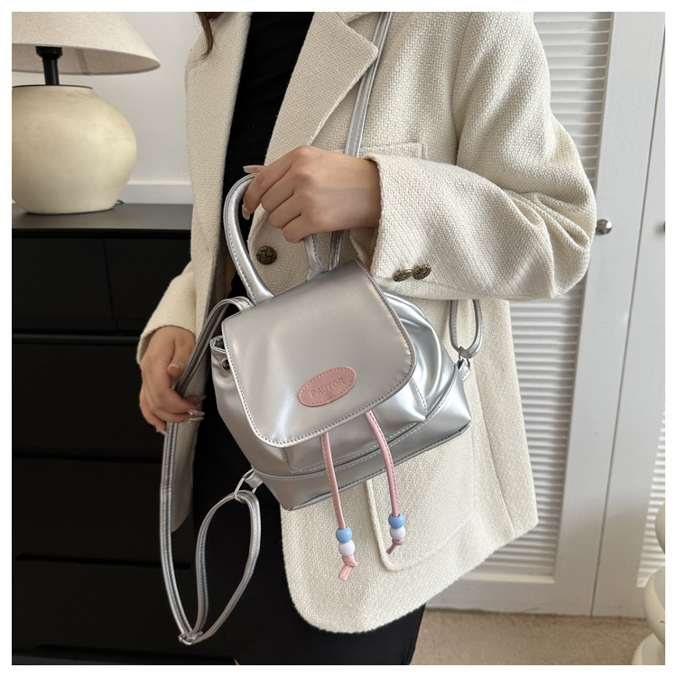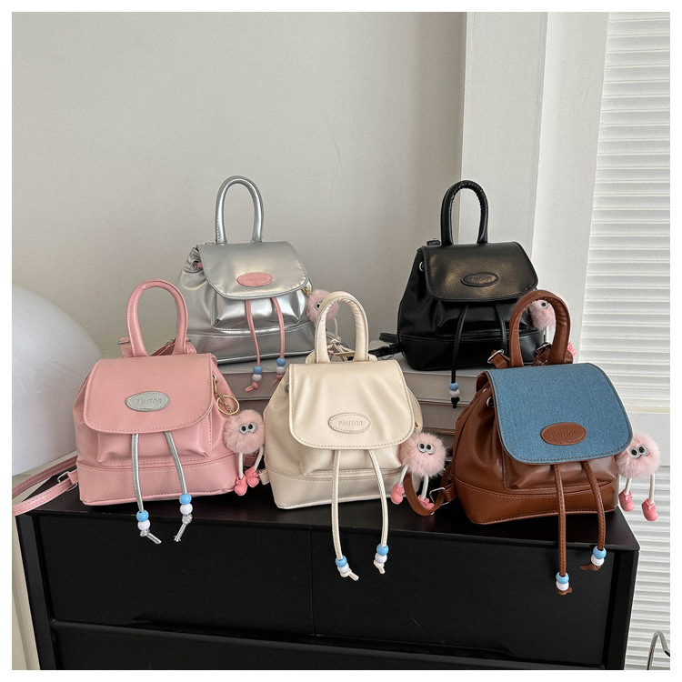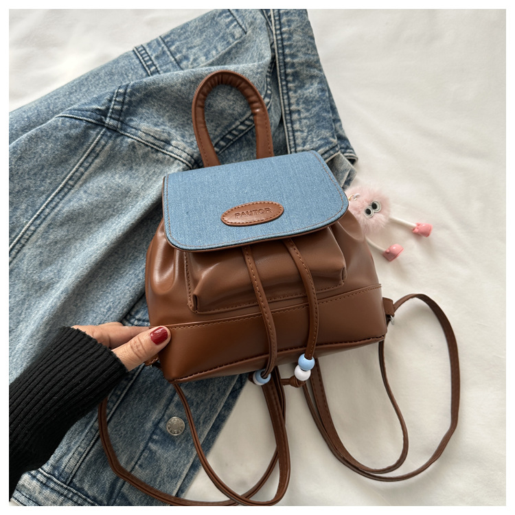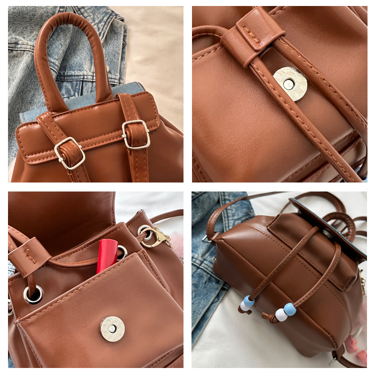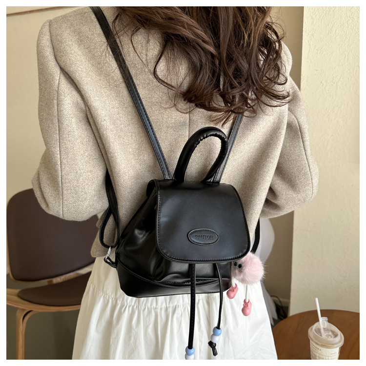2023新款复古时尚纯色双肩包女包秋季洋气休闲潮简约出游小背包潮