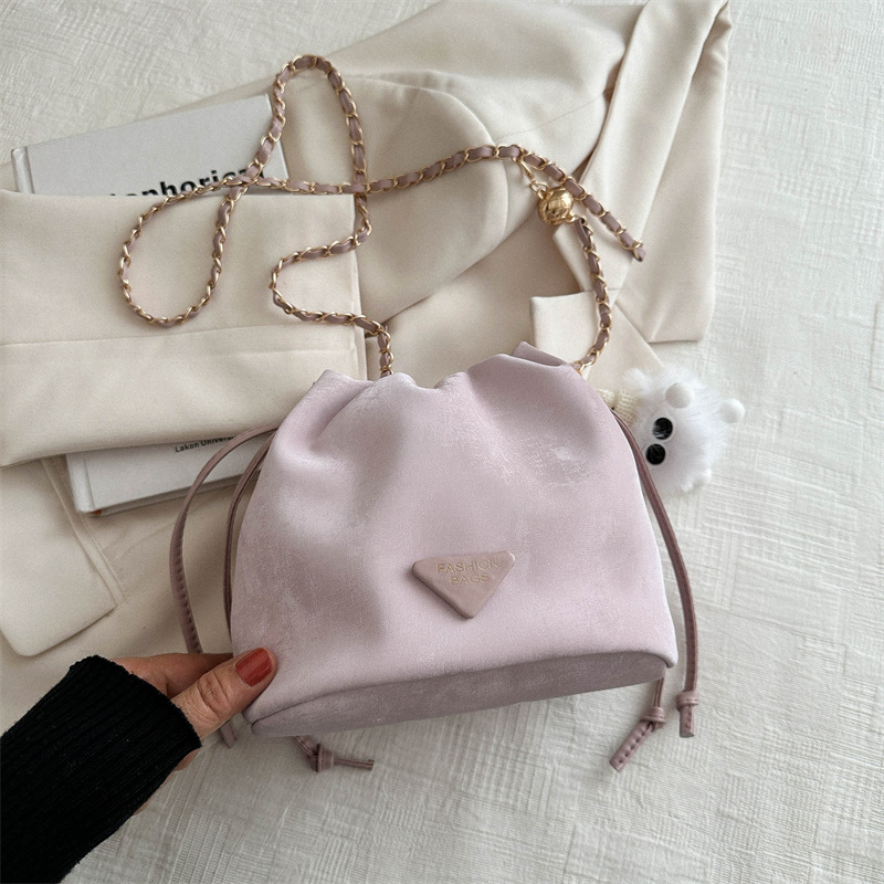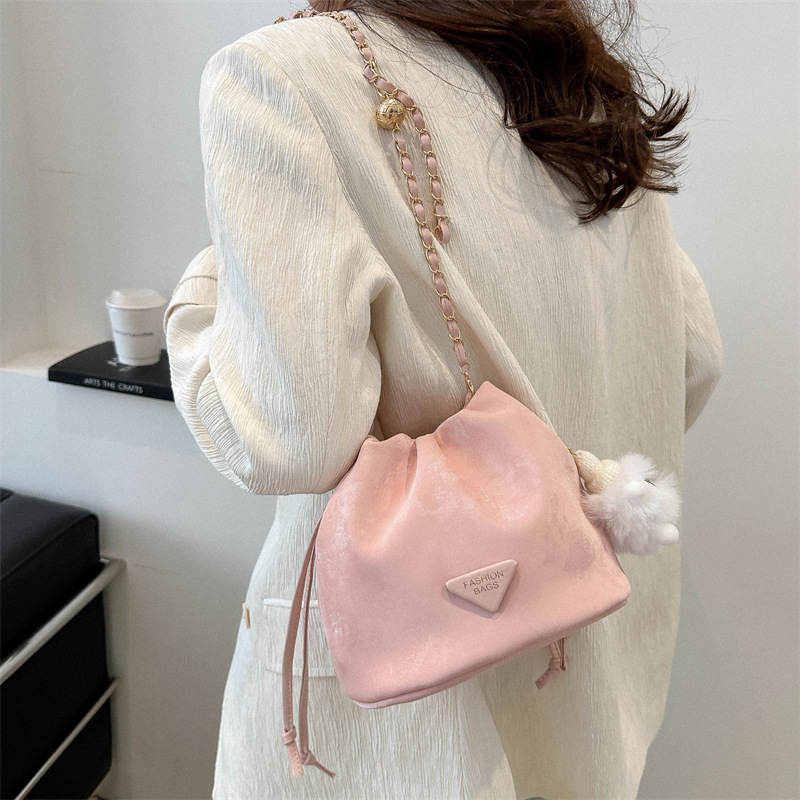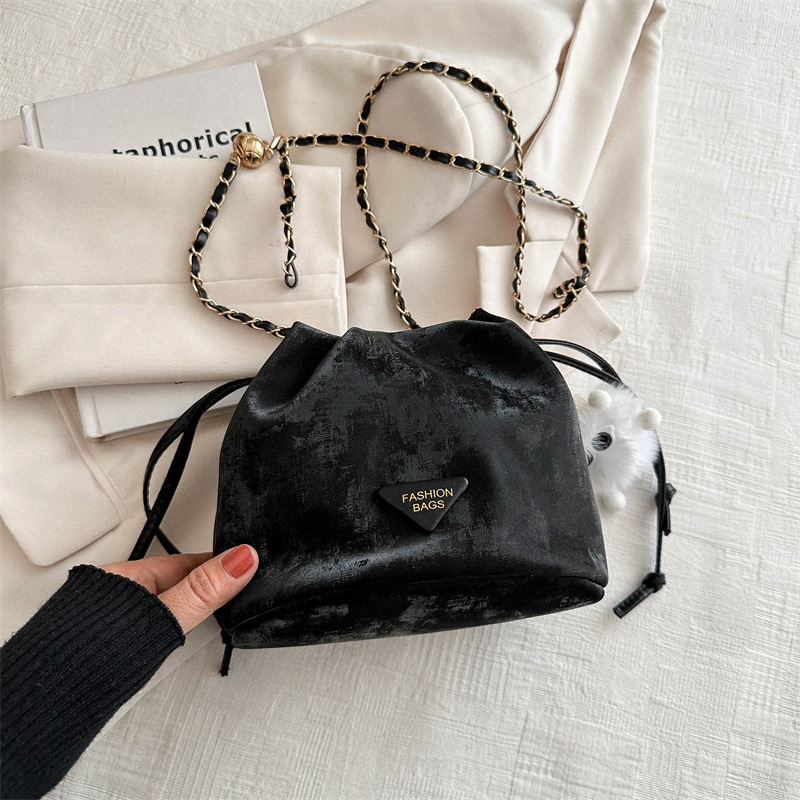 今年流行复古包包2024新款女包春季休闲链条斜挎包时尚软皮水桶包