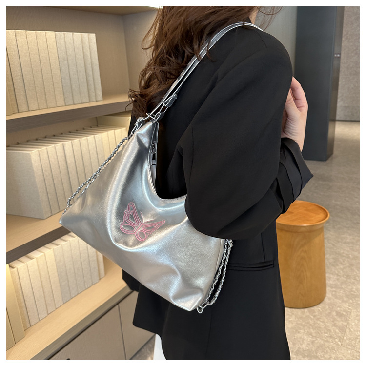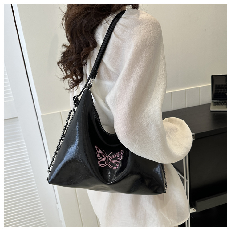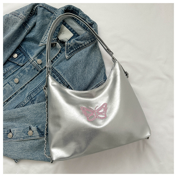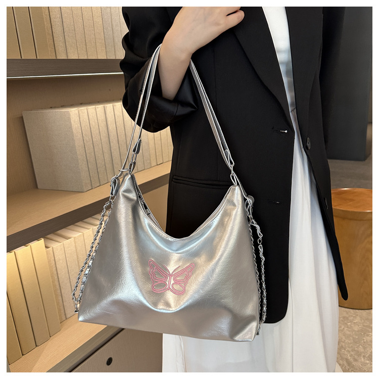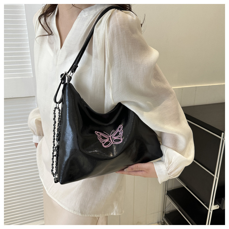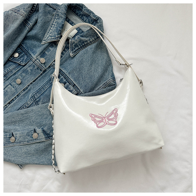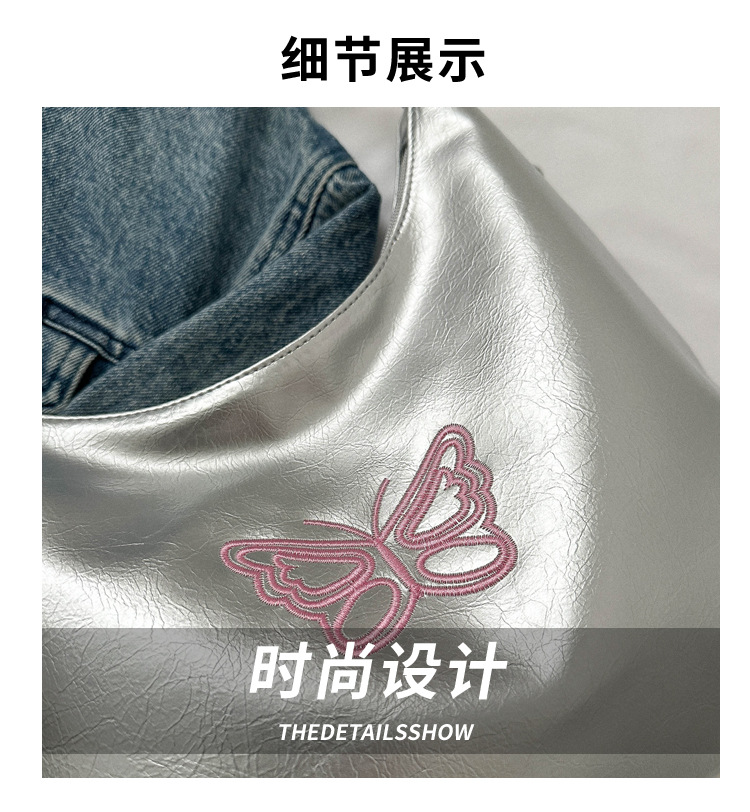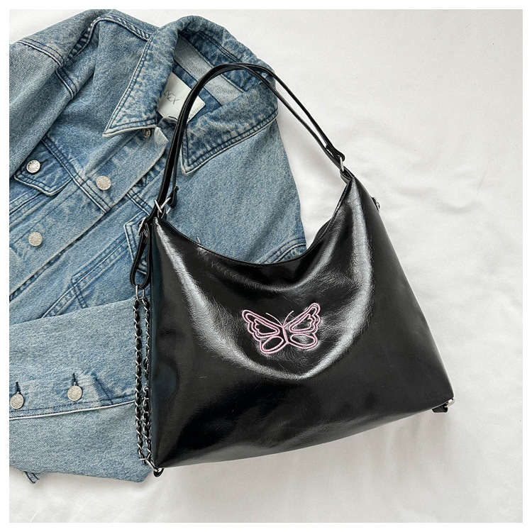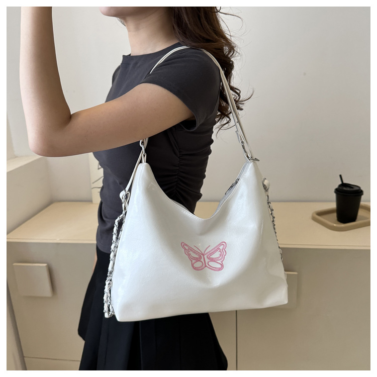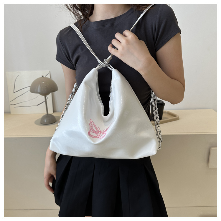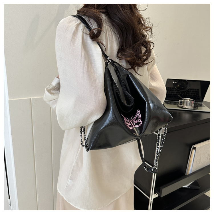 休闲软面大容量女双肩包2023新款背包时尚刺绣蝴蝶多用单肩水桶包