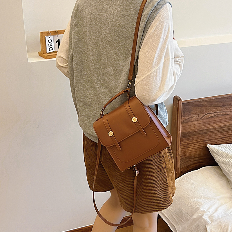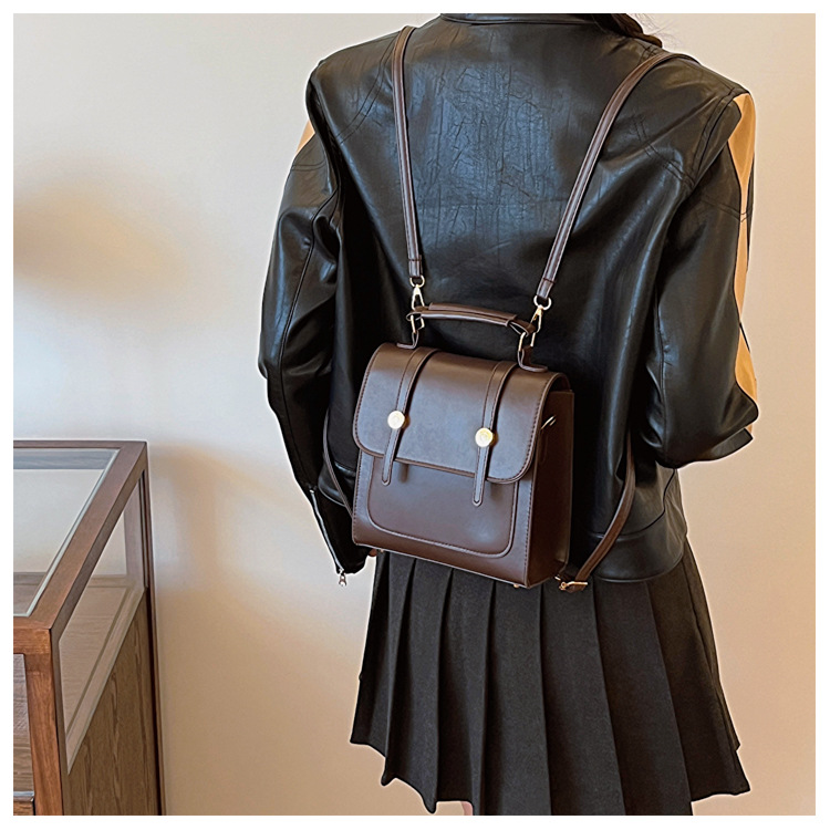 英伦复古双肩包女2023秋季新款潮流学生双肩背包多功能休闲旅行包
