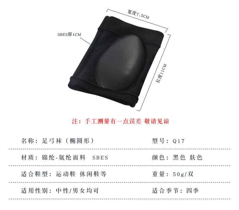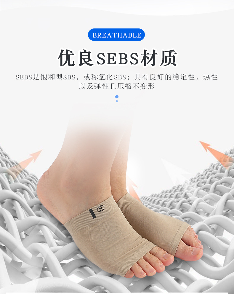 足弓垫弹性布料垫 足部护理柔软减震硅胶绷带足弓鞋垫袜套