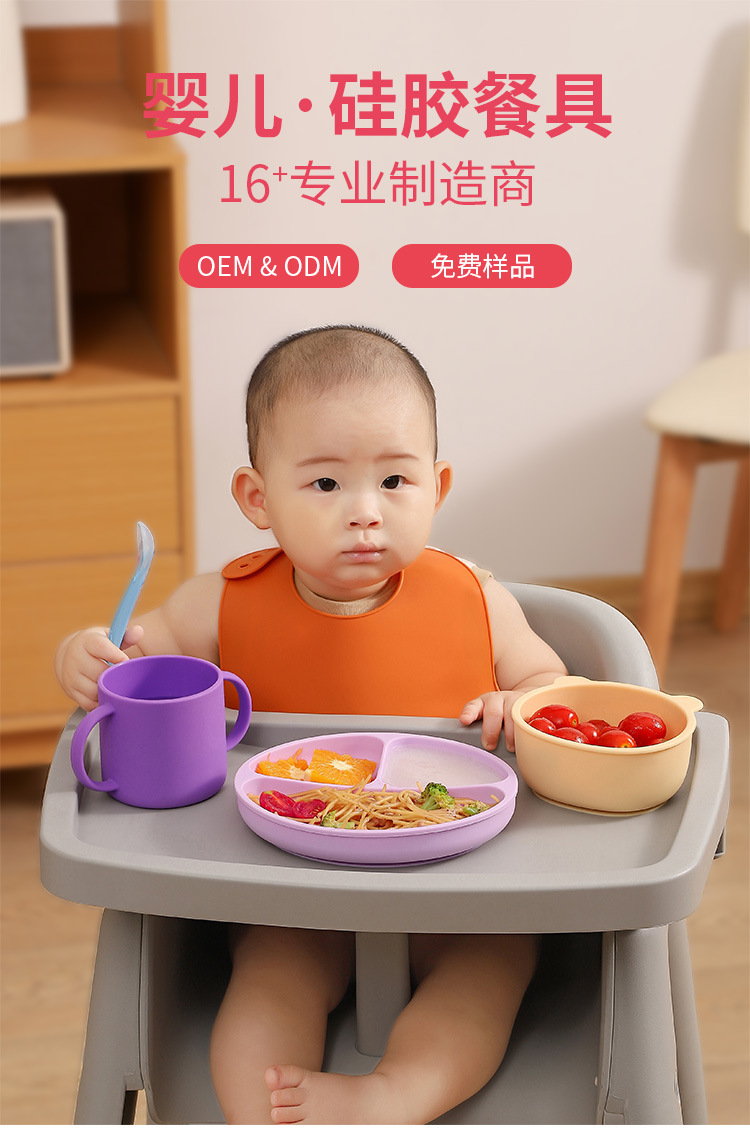 婴童硅胶碗盘儿童喂养辅食餐具围兜蜗牛碗二合一水杯硅胶保鲜袋