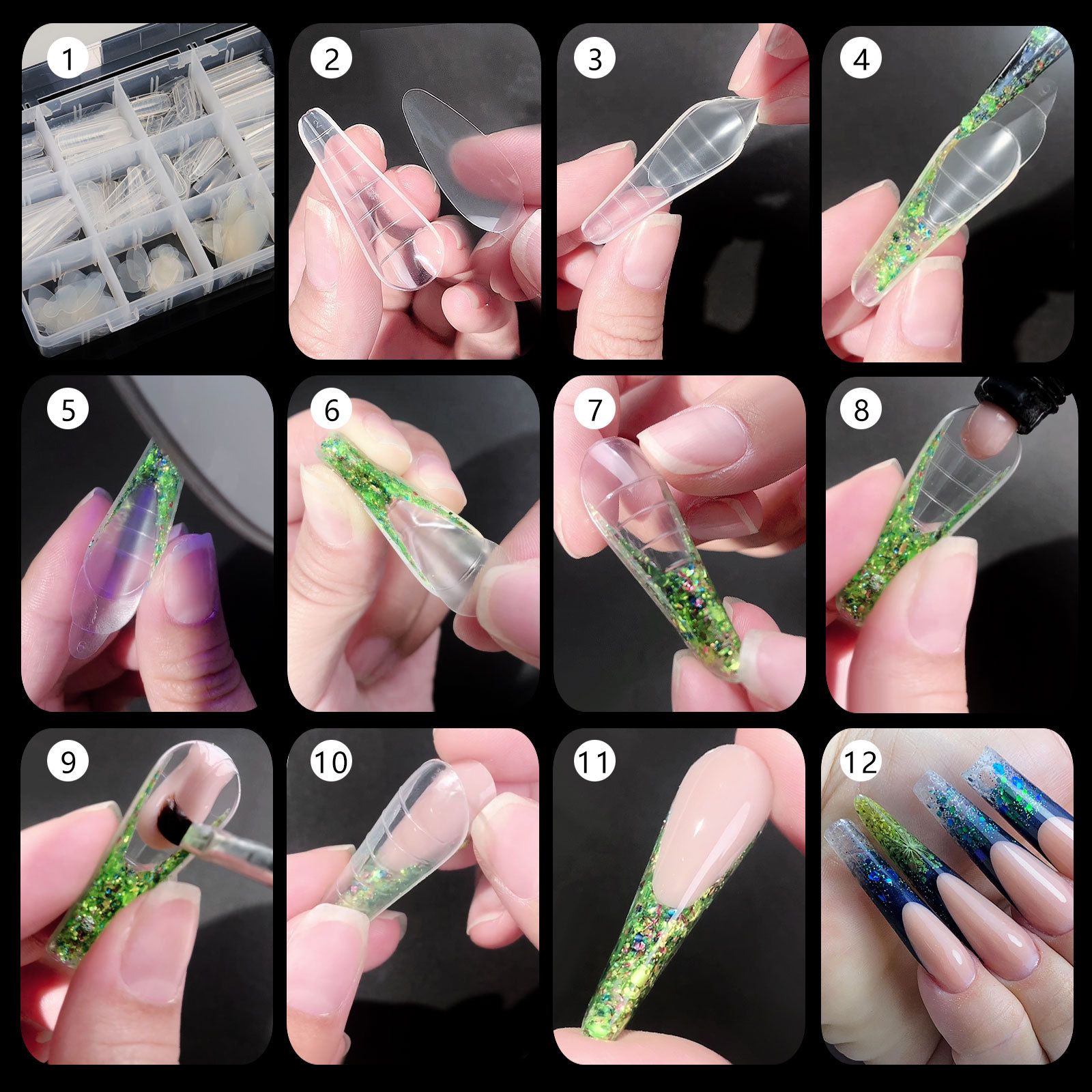 水晶延长甲套装美甲水晶甲膜无纸托延长胶甲模288pcs甲模片套装