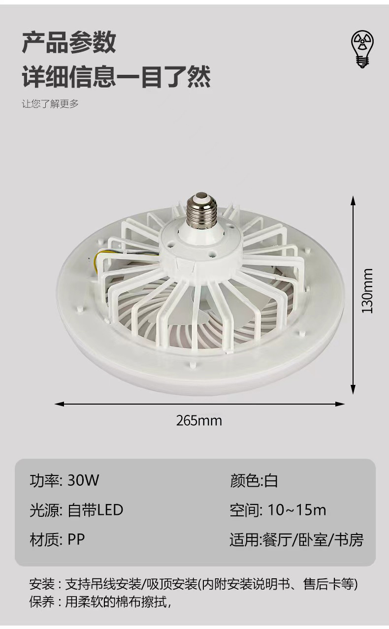 网红款LED螺口风扇灯卧室挂壁照明风扇二合一卫生间两用节能灯