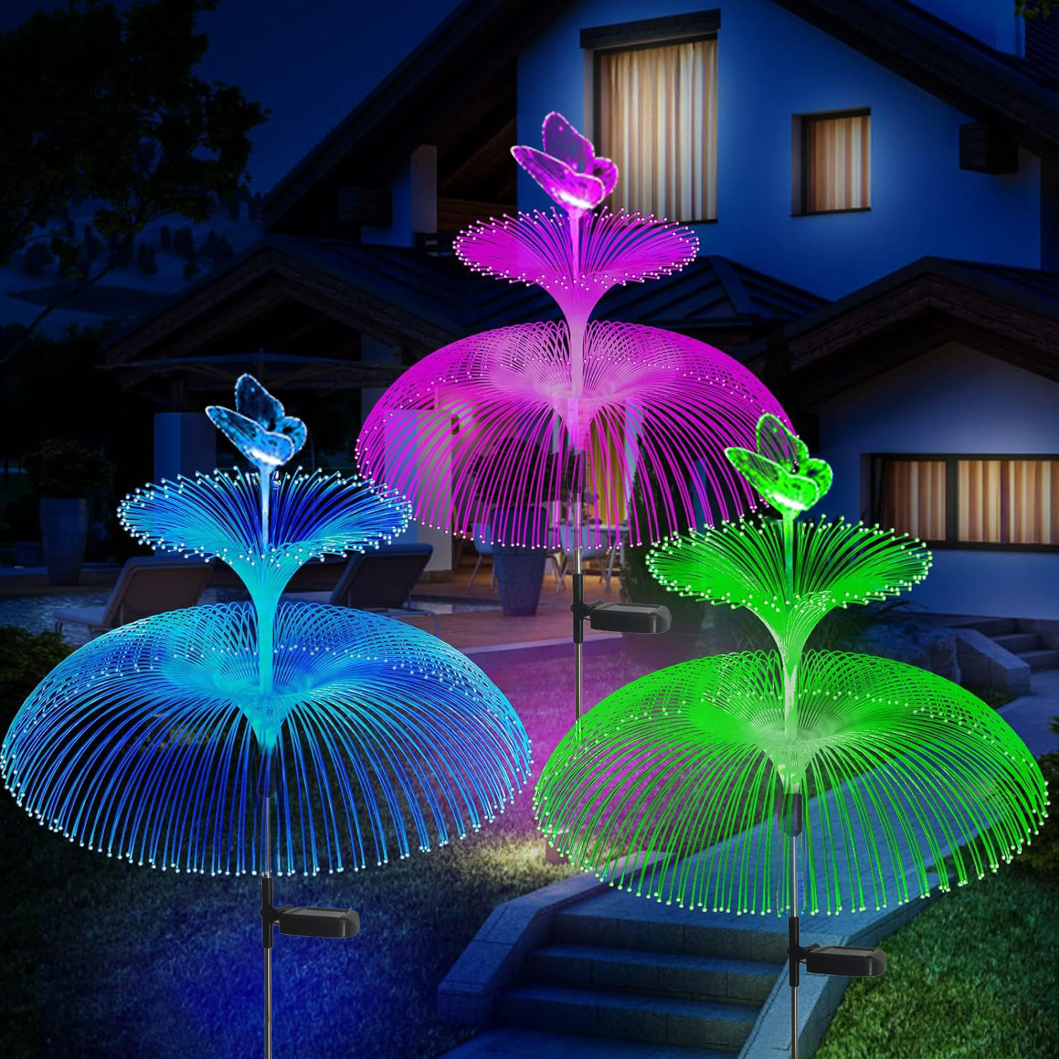 太阳能水母灯光纤蝴蝶水母节日装饰灯庭院花园草坪地插灯户外防水