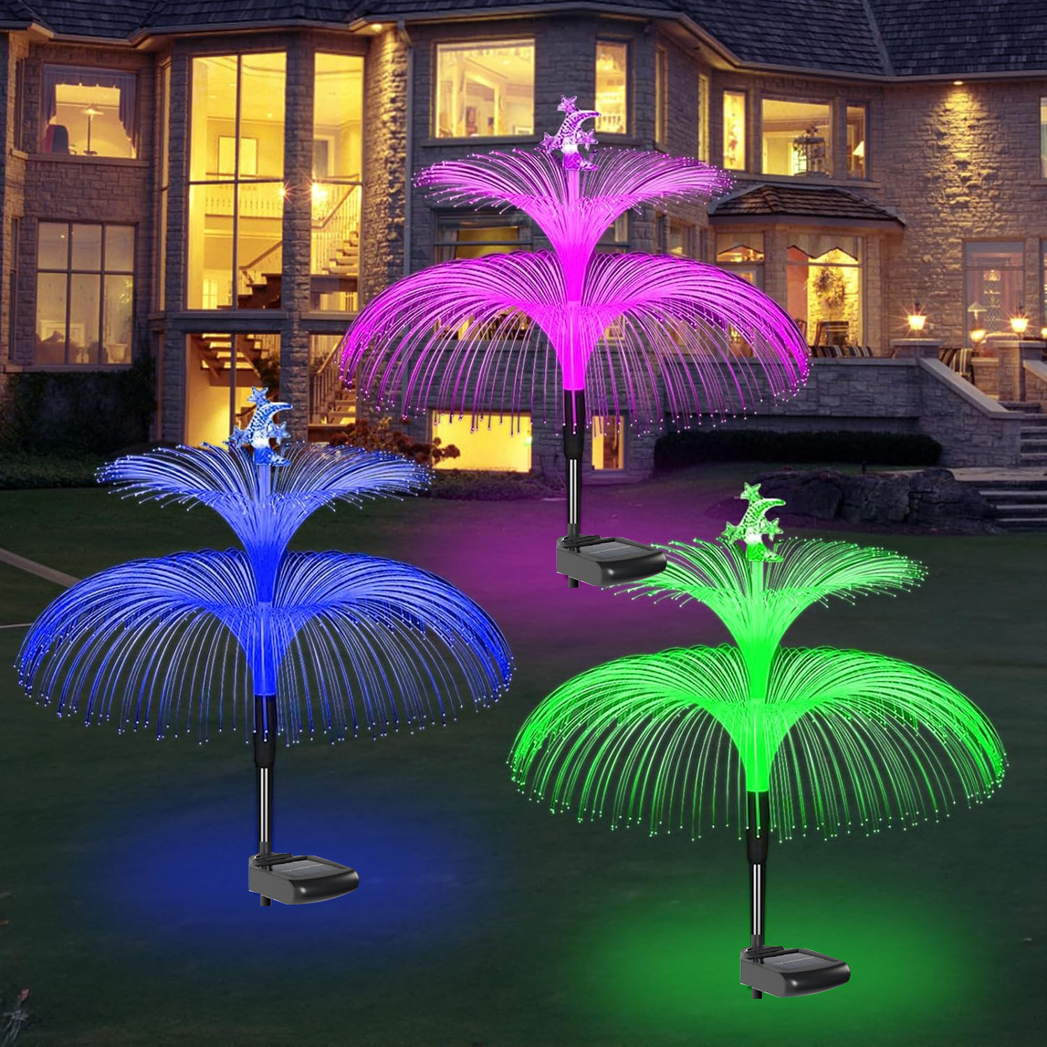 户外太阳能水母灯芦苇灯防水LED彩色发光庭院装饰灯景观灯草坪灯