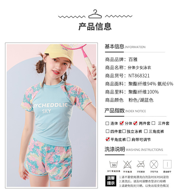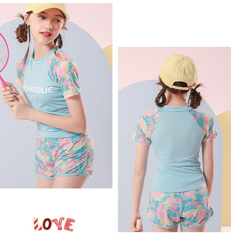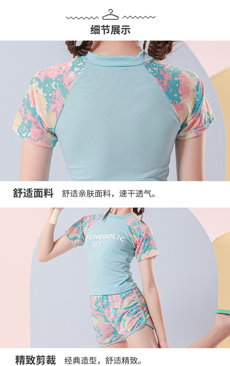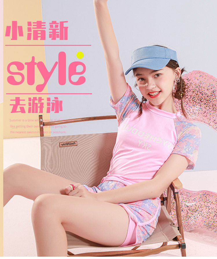 儿童游泳衣女童分体运动少女中大童小清新印染平角泡温泉度假泳装