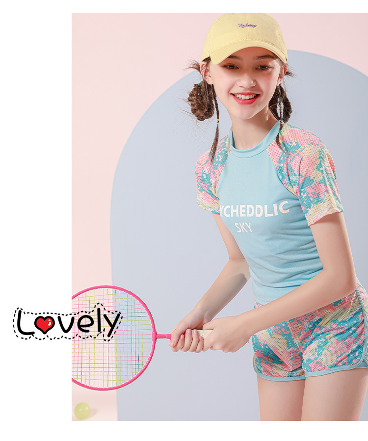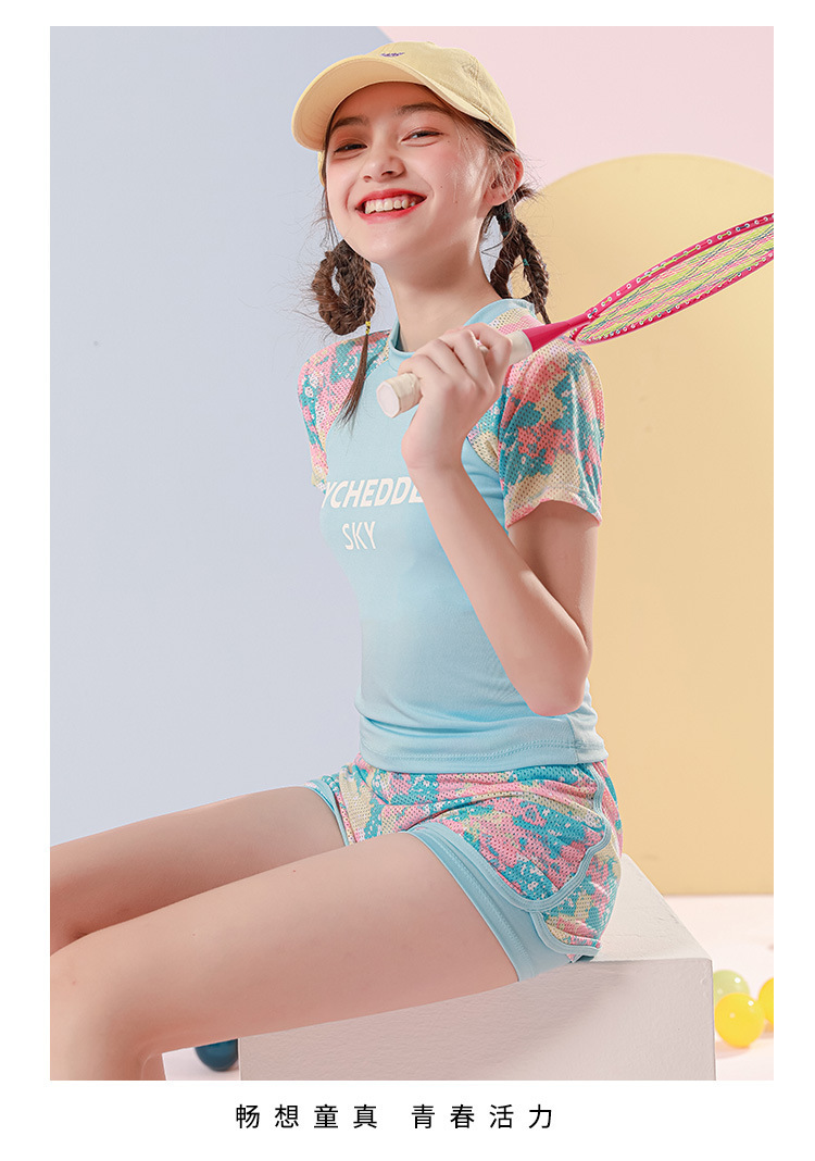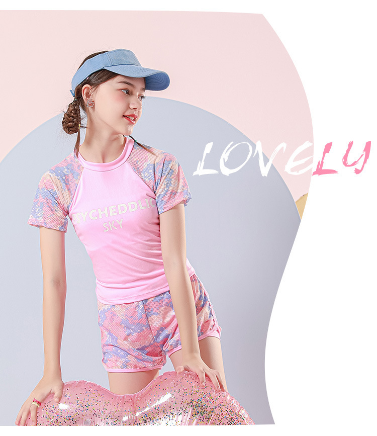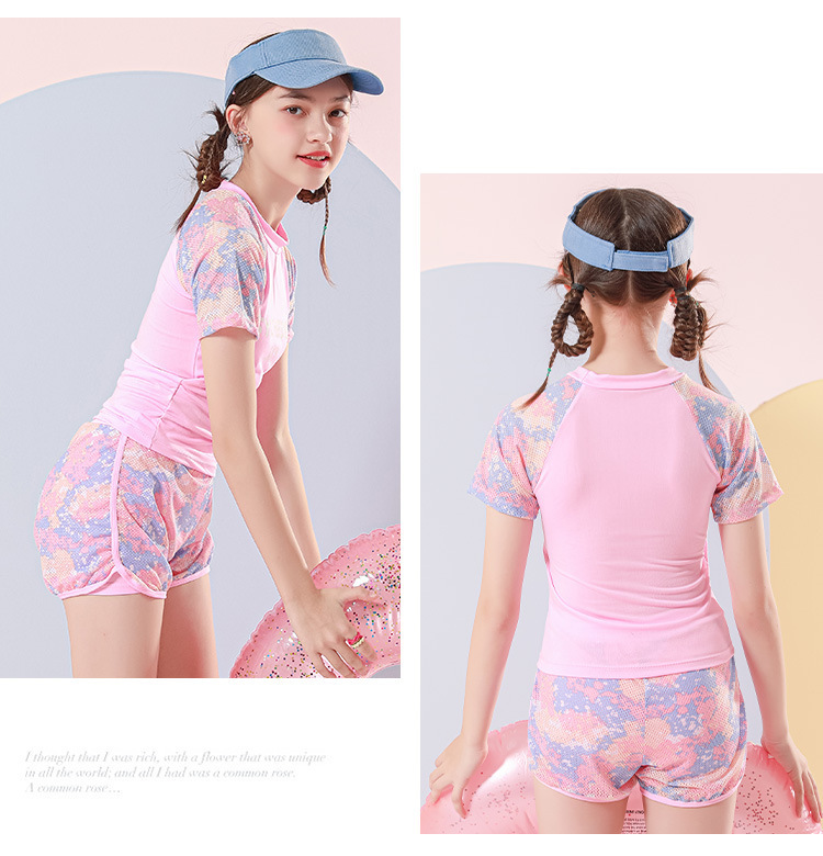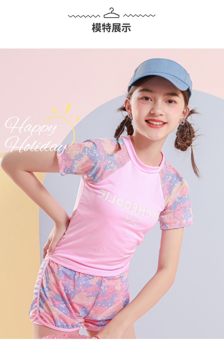 儿童游泳衣女童分体运动少女中大童小清新印染平角泡温泉度假泳装