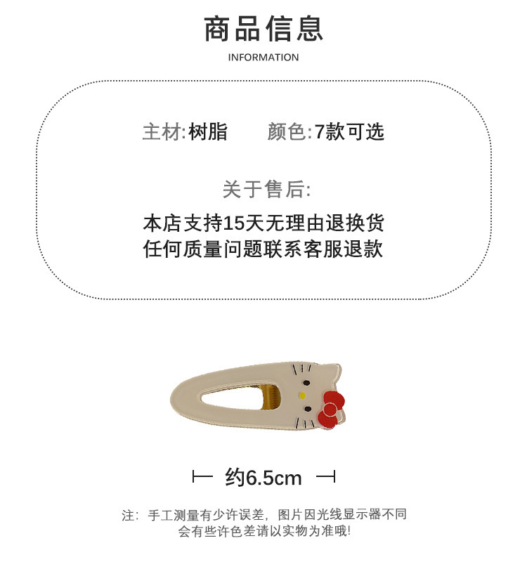 可爱卡通鸭嘴夹侧边发夹前额刘海夹子头饰kitty猫儿童发卡女夏季
