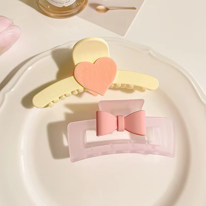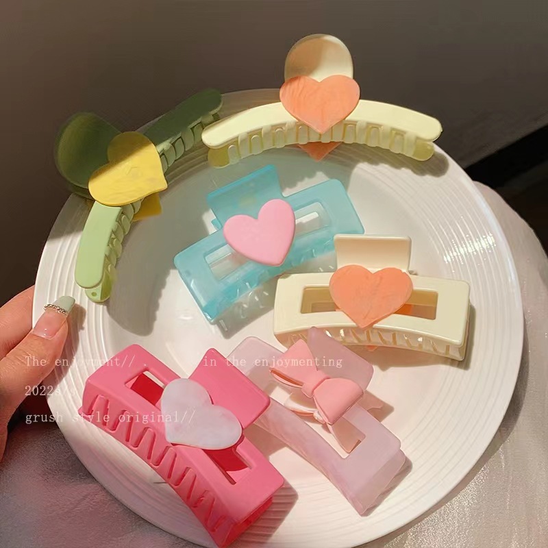 网红少女爱心发夹抓夹盘发大号鲨鱼夹可爱蝴蝶结发抓发卡夹子头饰