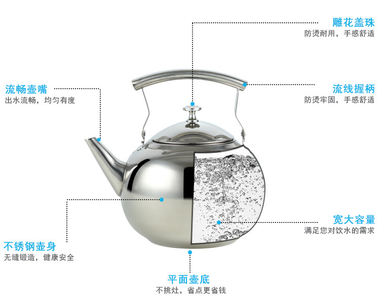 加厚不锈钢茶壶 餐厅泡茶壶带滤网 饭店酒店大茶壶茶水壶电磁炉用