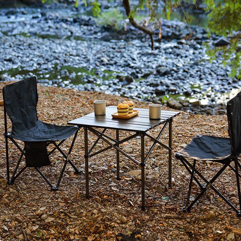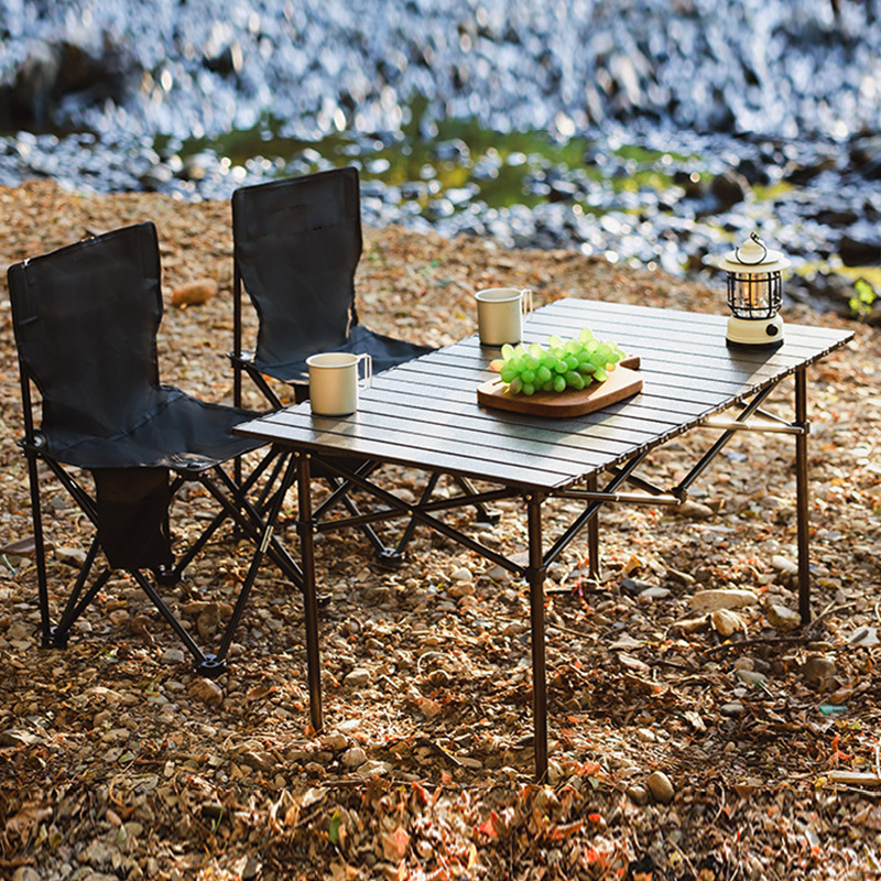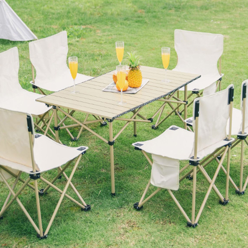 户外折叠桌椅家庭出游露营野餐桌椅套装便携式铝合金蛋卷桌组合