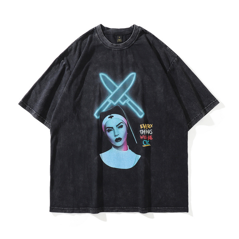 TKPA杜宾犬印花洗水复古vintage高街潮牌宽松圆领短袖T恤男女街头