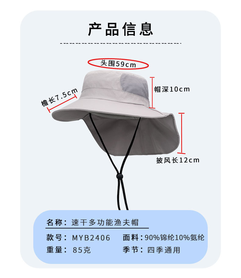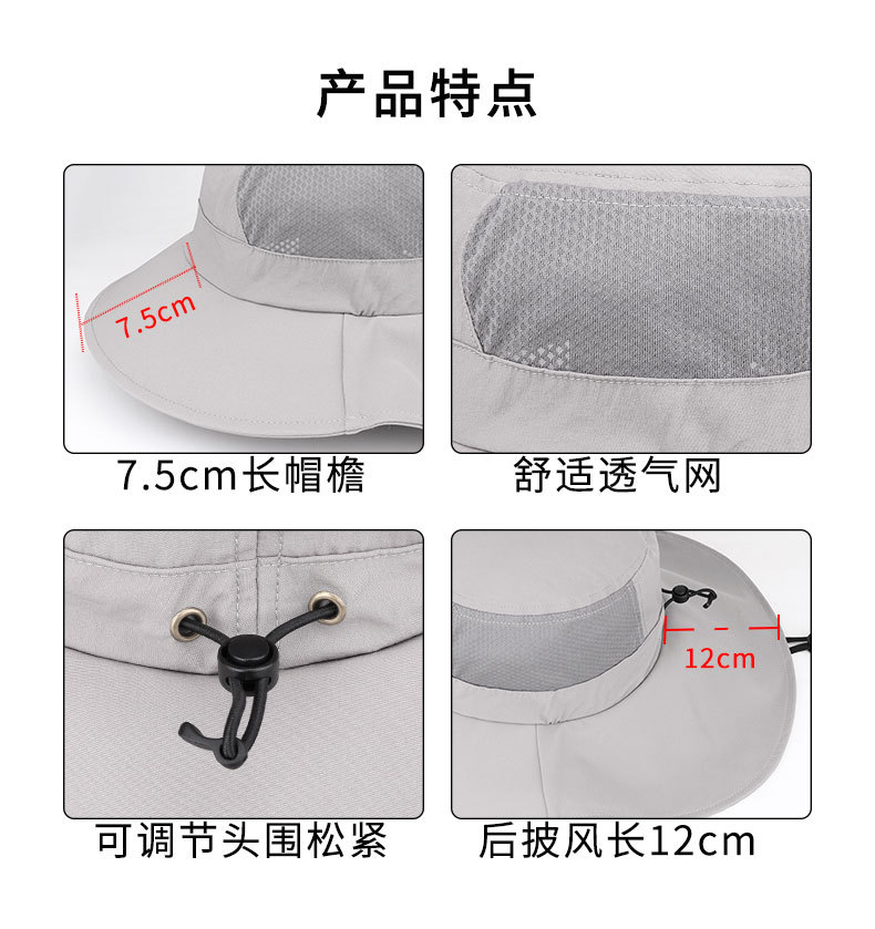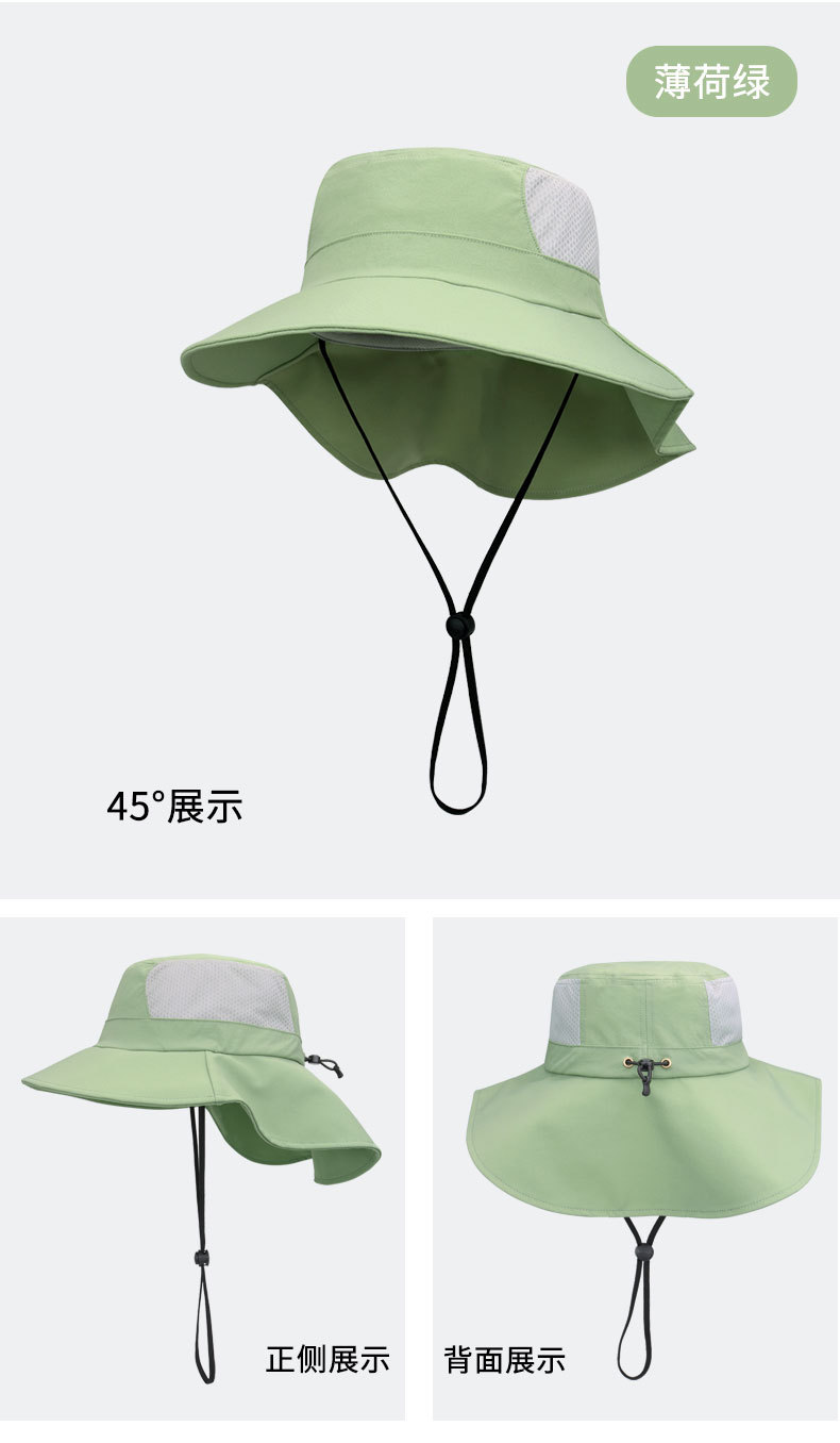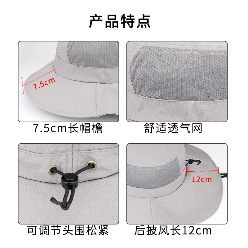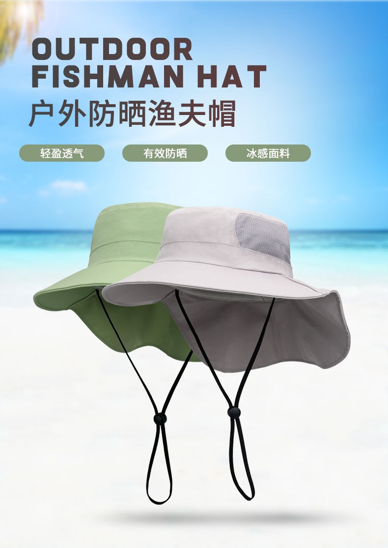 遮阳帽户外男女休闲钓鱼防晒速干冰感透气大檐护颈披肩帽渔夫帽子